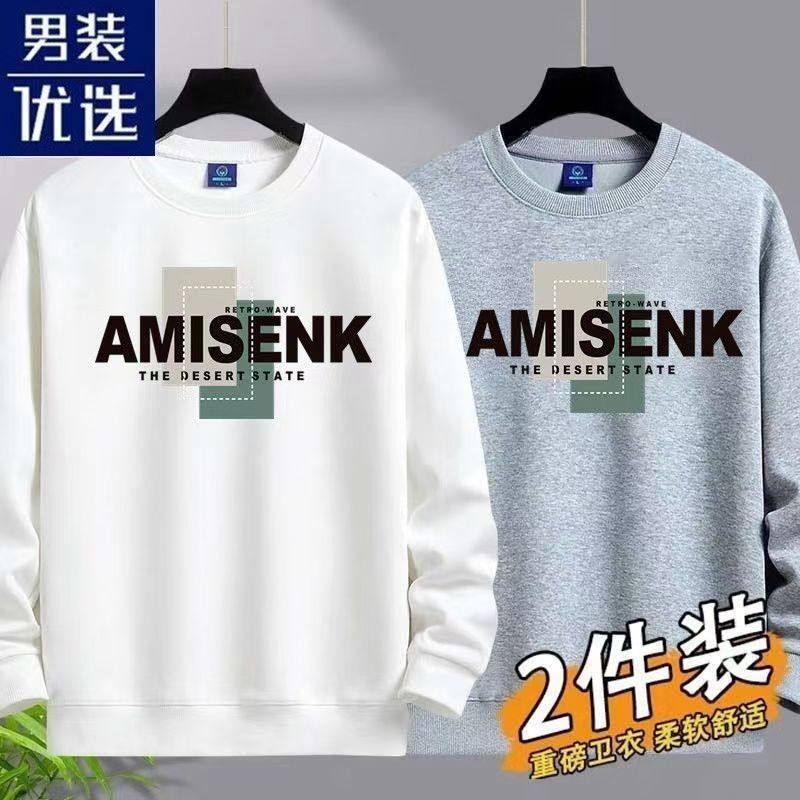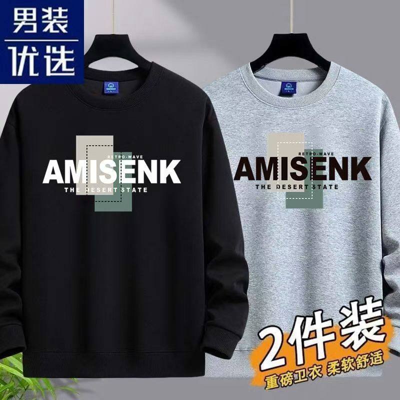 卫衣男士秋冬2025新款长袖宽松加绒纯棉圆领长袖T恤休闲百搭上衣