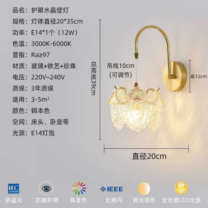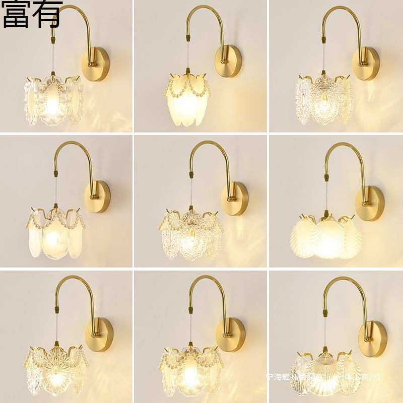 法式卧室床头灯壁灯玻璃灯轻奢简约现代创意过道灯走廊玄关灯具