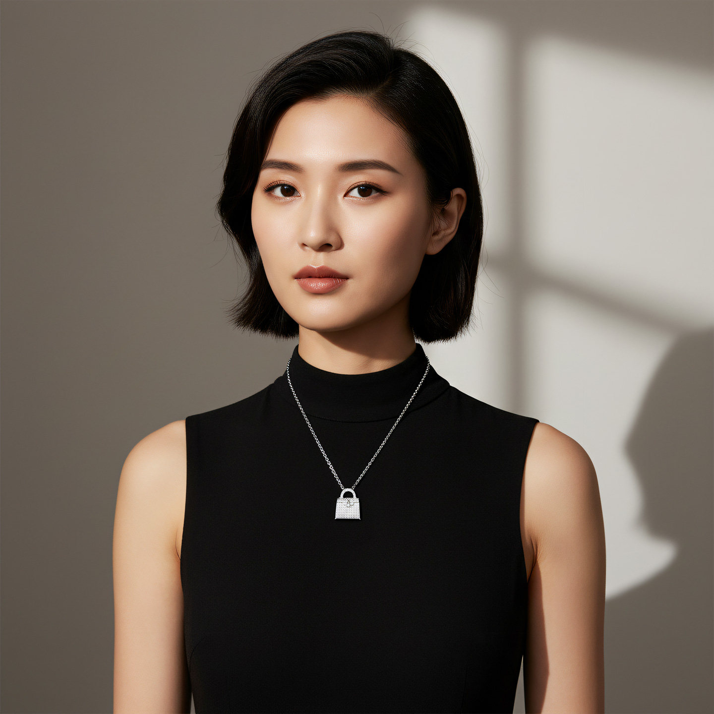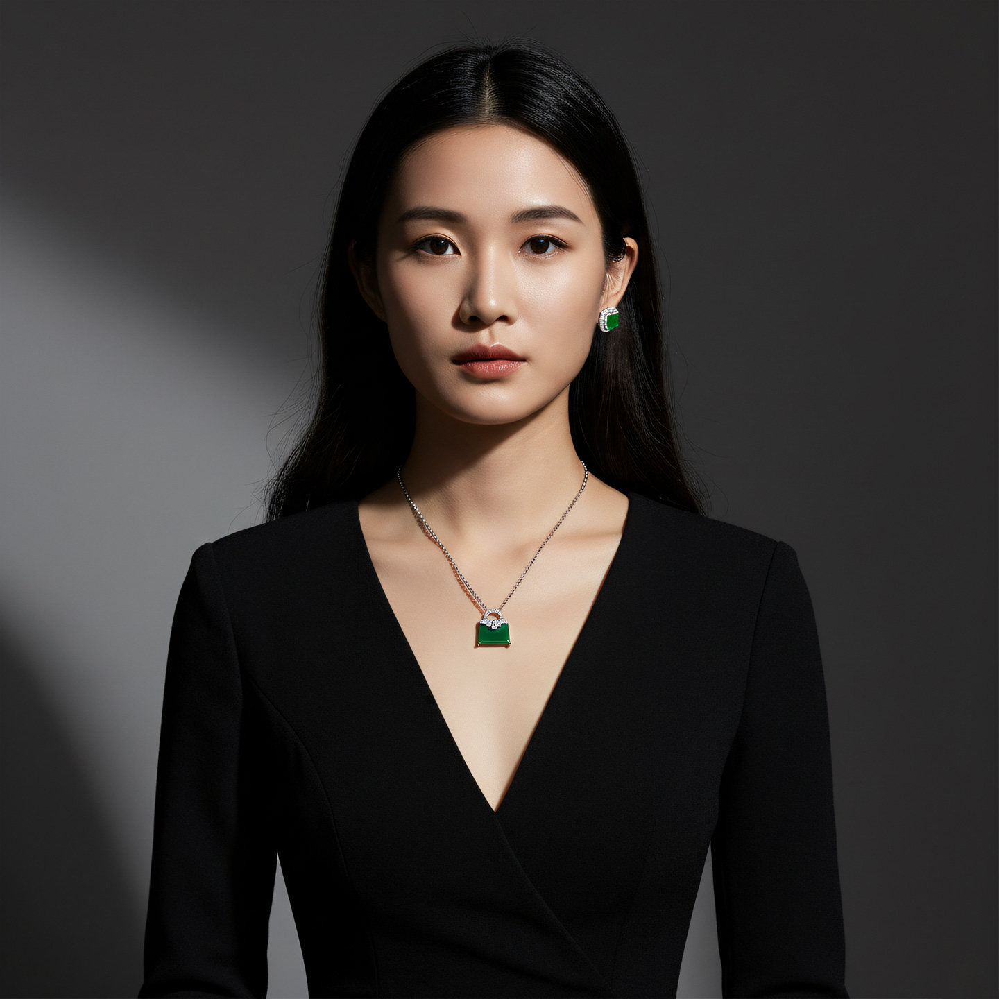 AILEQ纯银天然玉髓潮流凯丽阳绿色钱包吊坠轻奢女时尚珠宝项链K10