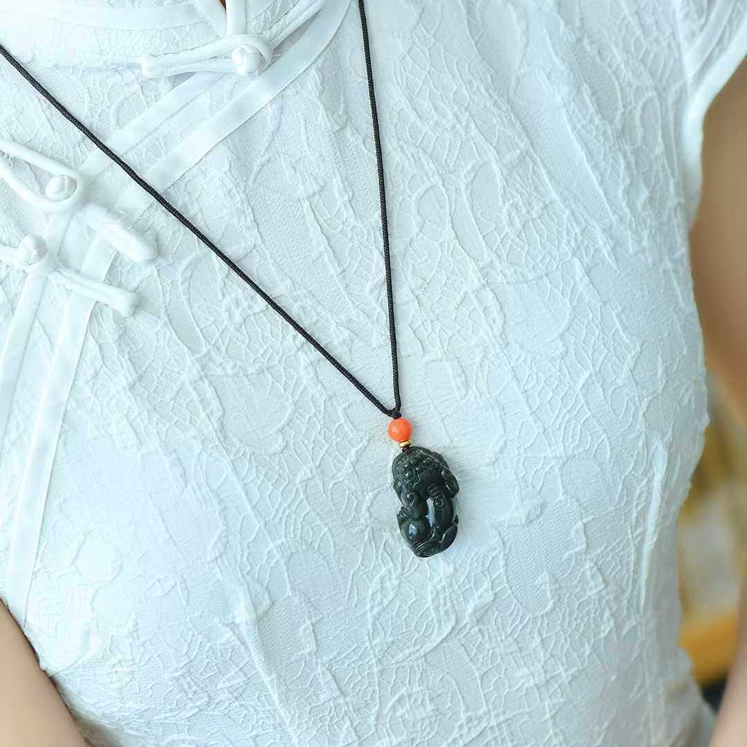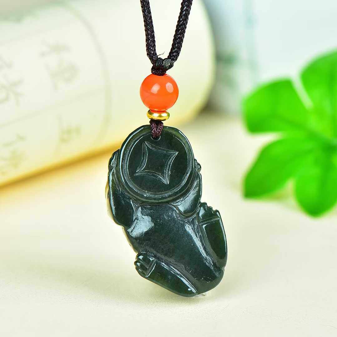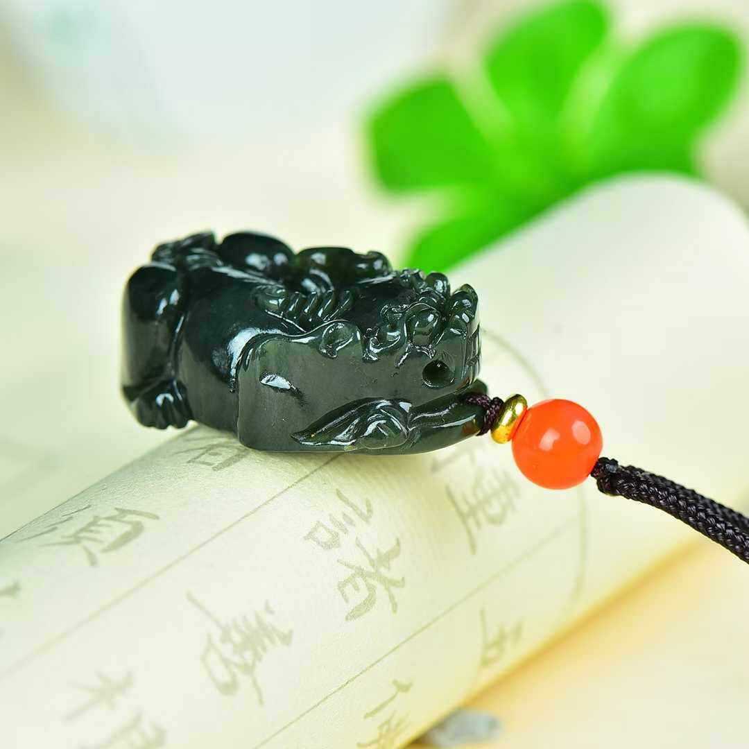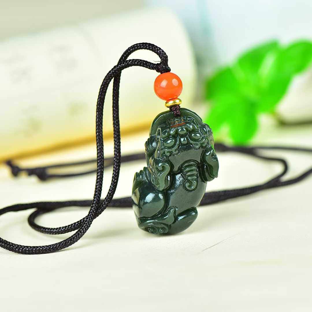 正品新疆和田玉貔貅吊坠青玉男女情侣款真玉石项链挂件玉佩可复检