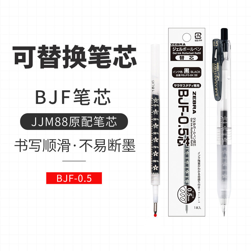 日本ZEBRA斑马官方旗舰店官网直营JJ77中性笔按动式可换芯JF-0.5/MJF替芯JJ15黑色笔芯套装签字笔记圆珠笔