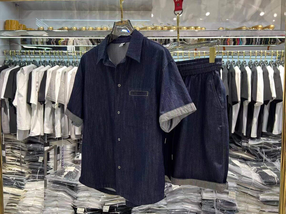 正版莱赛尔天丝牛仔春夏秋套装男短袖长袖衬衫男士休闲短裤两件套