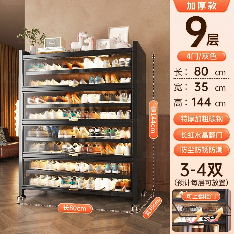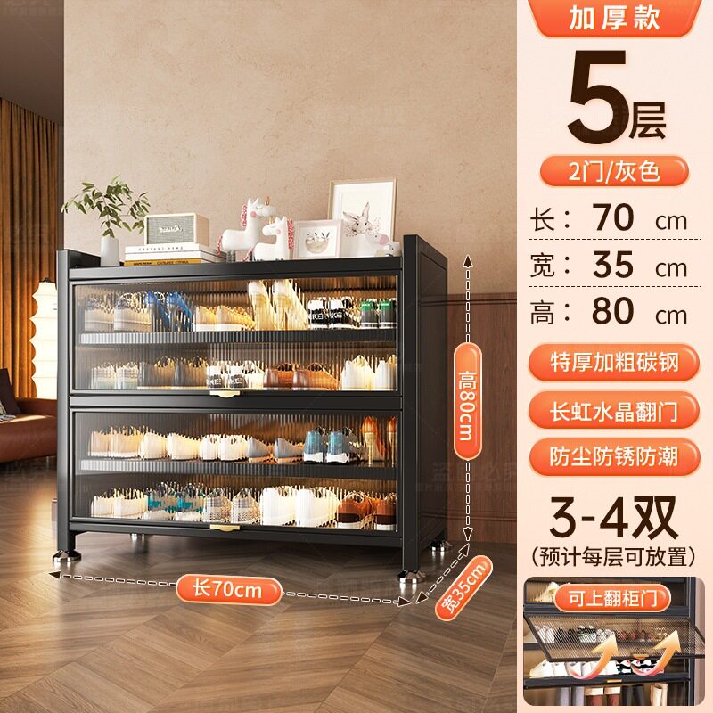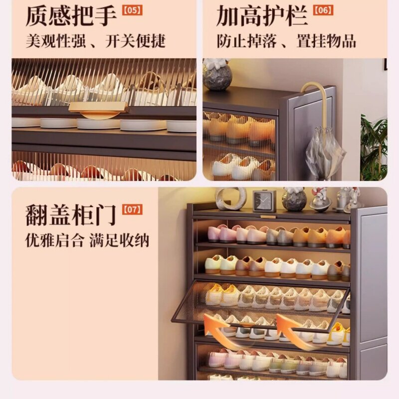 鞋柜家用门口入户大容量多层置物架翻盖防尘收纳钢制鞋架简易玄关