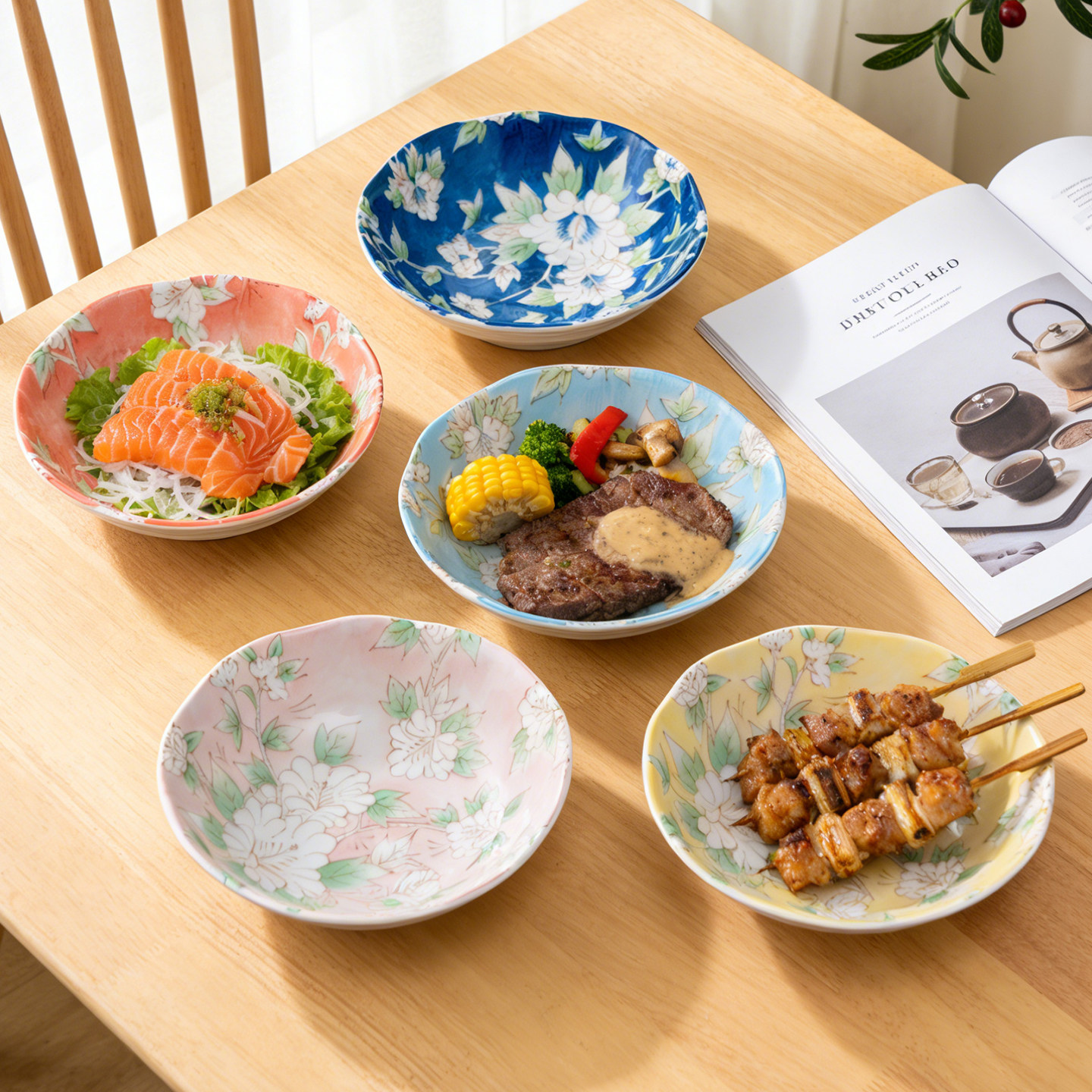 【14.8四只装】四角盘子菜盘家用简约陶瓷翘脚碗凉菜汤碗沙拉碗盘