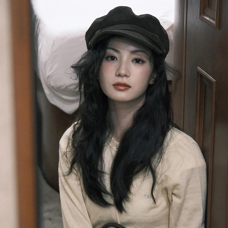 2025新款棕咖色麂皮绒贝雷帽子女款秋冬季英伦风画家帽保暖八角帽