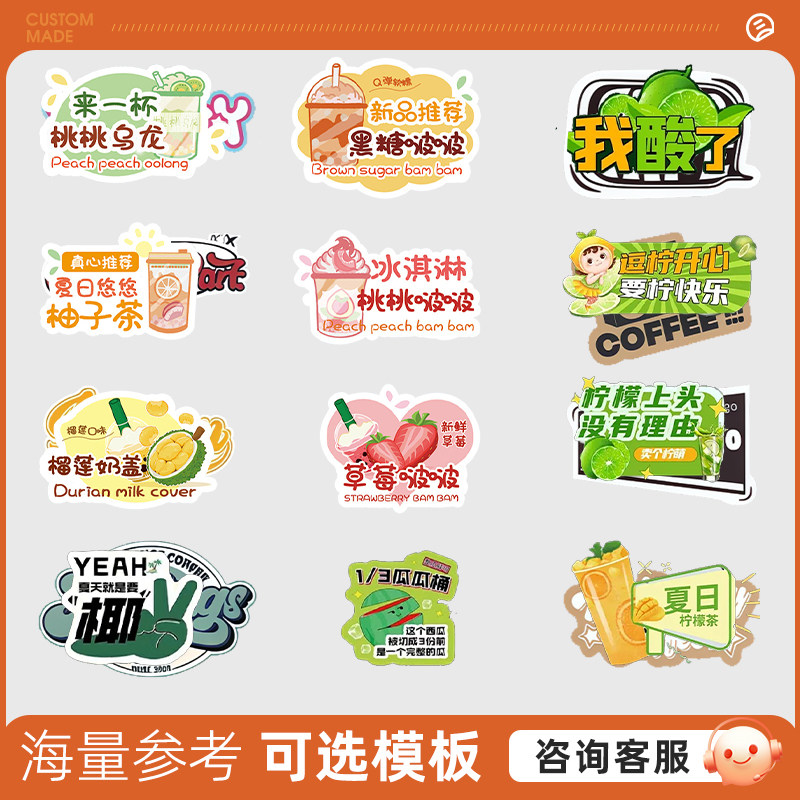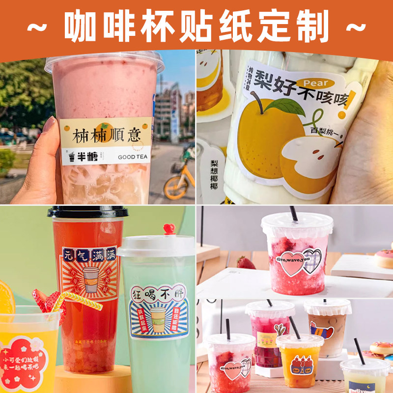 奶茶杯logo贴纸定制冰粉防水杯贴饮料饮品杯子广告定做水果茶瓶店网红咖啡一次性不干胶设计柠檬茶印创意标签
