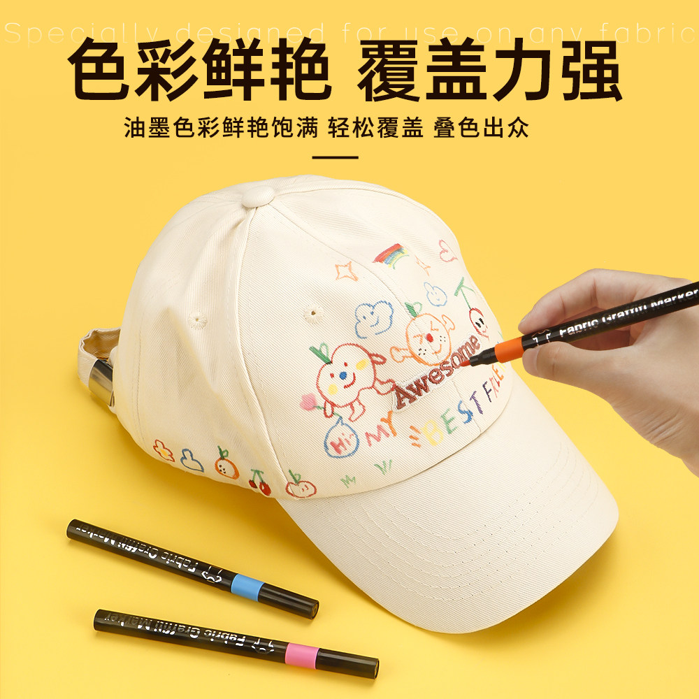 Artwalker布料彩绘织物笔衣服涂鸦T恤diy防水彩色布艺笔儿童纺织笔手绘衣物可水洗12色不掉色