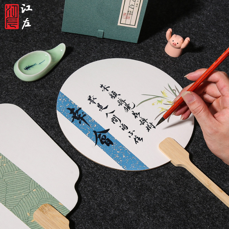 宣纸团扇空白扇子双面国画卡纸扇面熟宣半熟书法专用纸儿童手绘diy材料包国画作品纸古风纸扇子定制