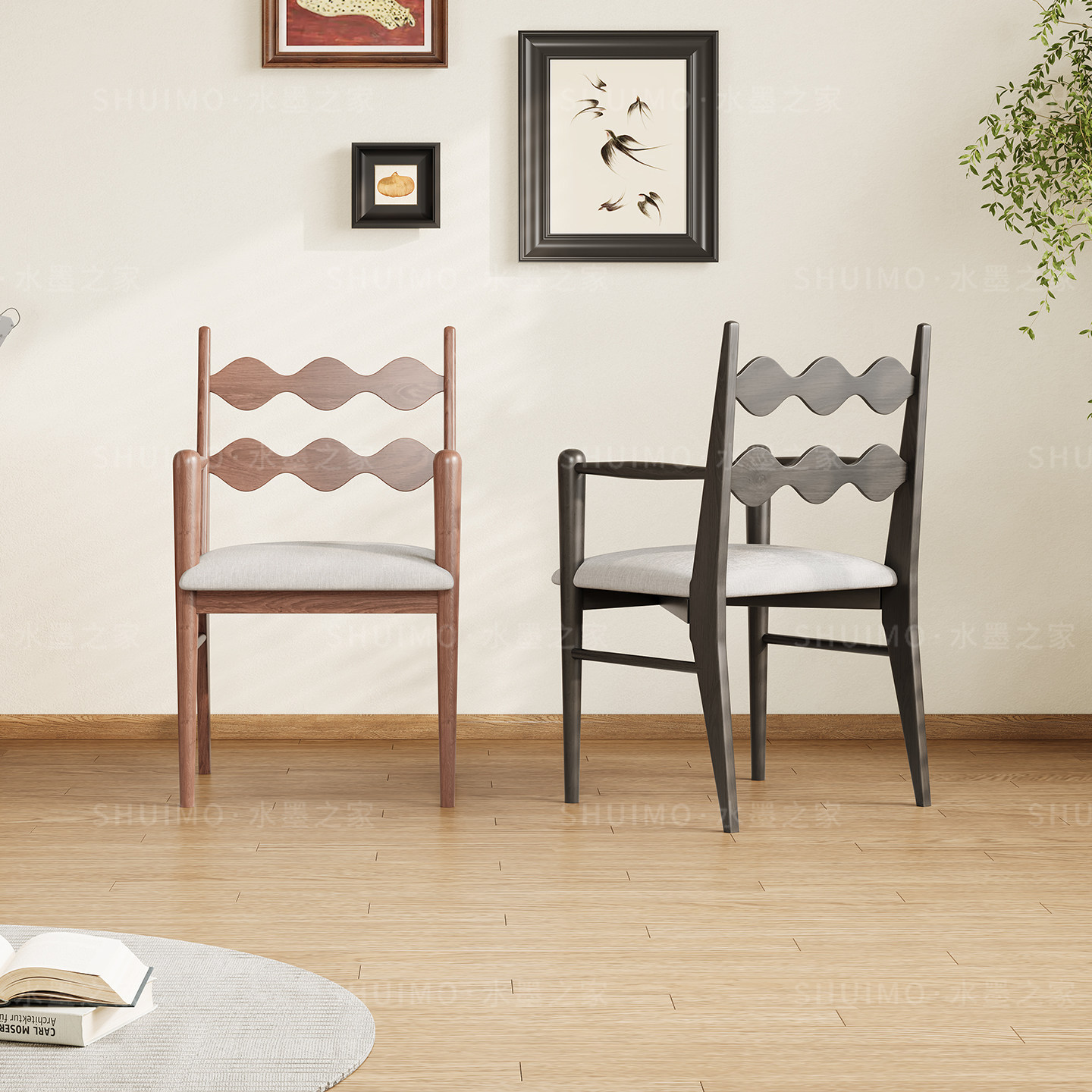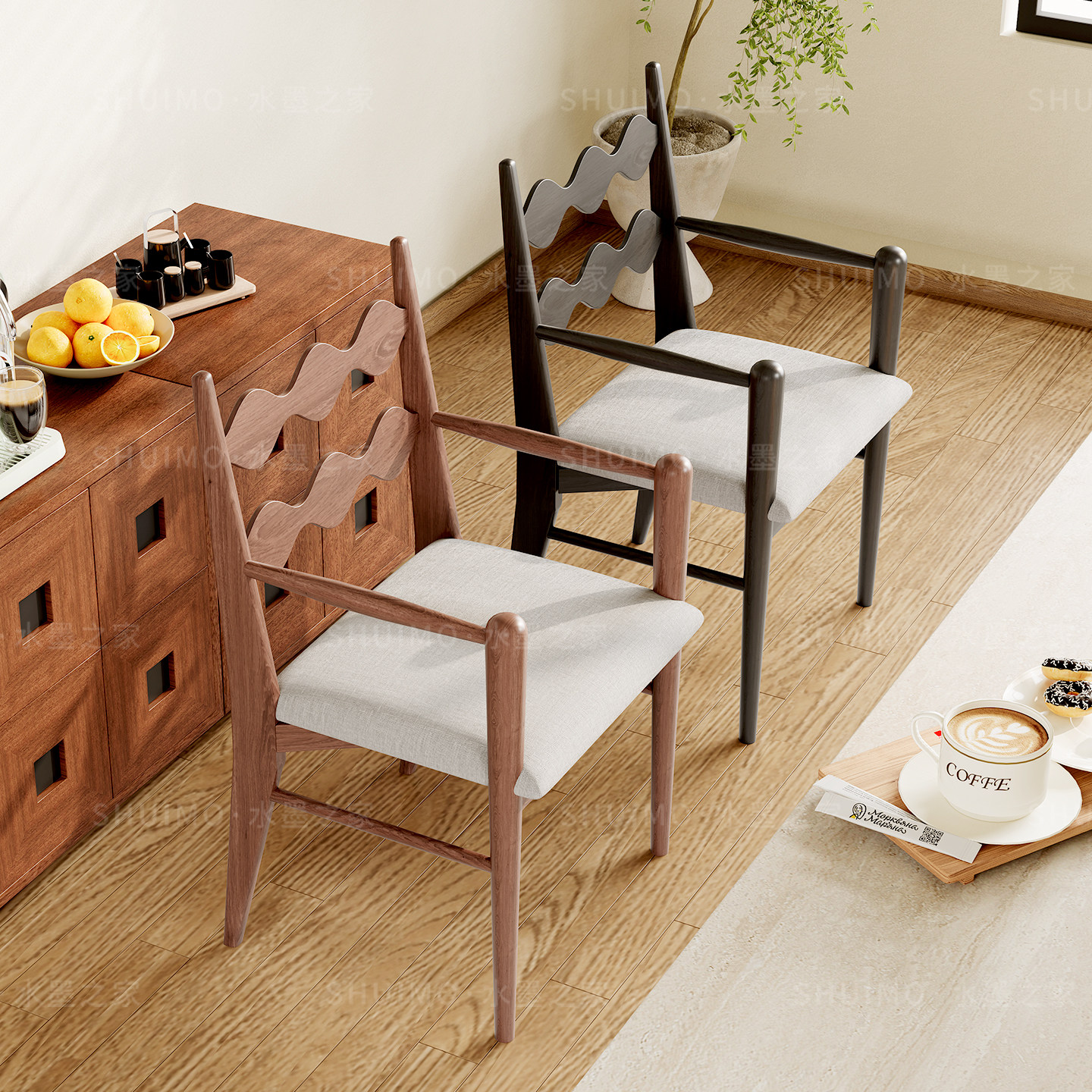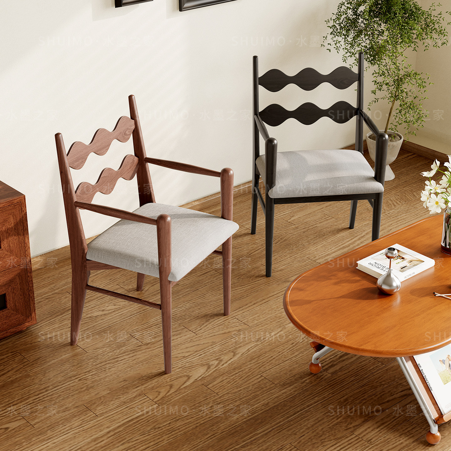 轻奢侘寂风餐椅皮软包设计师现代弯曲木咖啡厅实木椅子家用书房椅