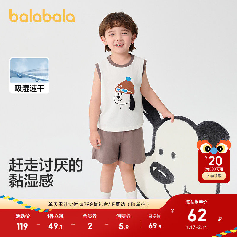 巴拉巴拉童装宝宝短袖套装男童T恤夏2025儿童两件套轻薄吸湿速干