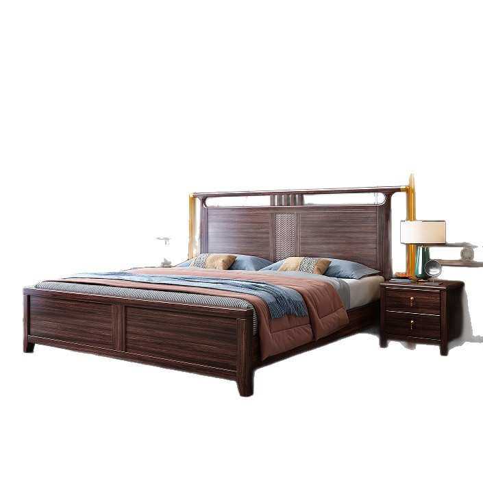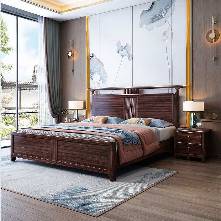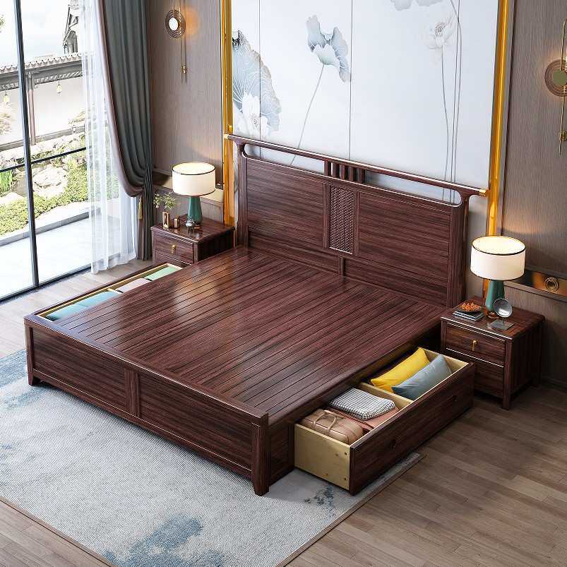 乌金木实木床新中式1.8m双人床主卧婚床1.5m经济型气压高箱储物床