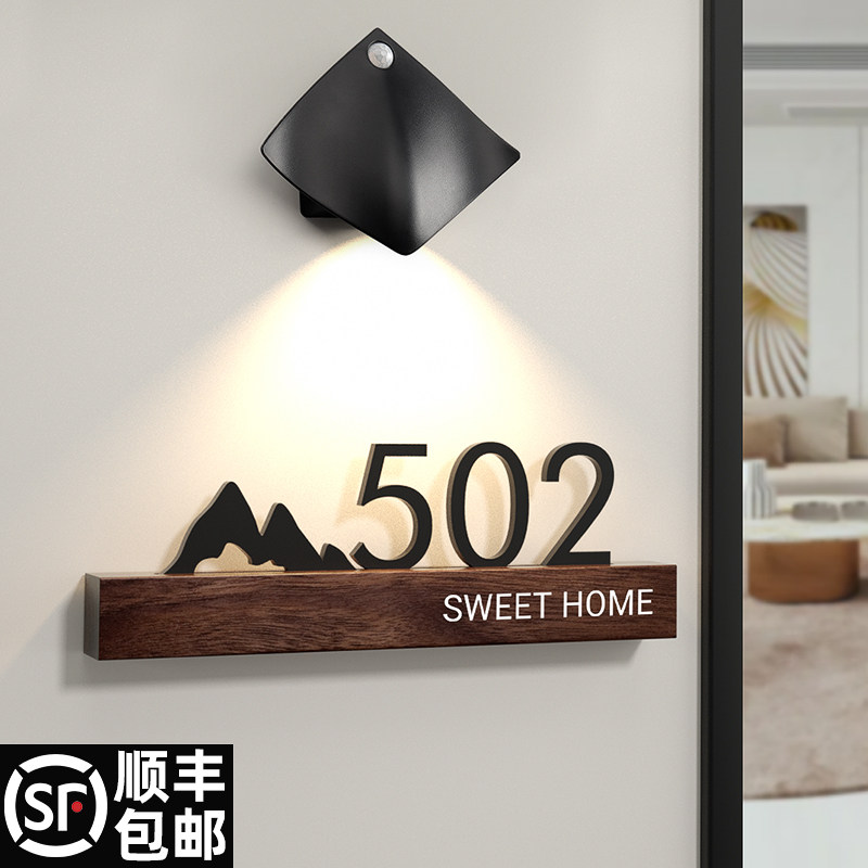 门牌号码牌家用实木数字门牌住宅入户门口装饰带灯门牌定制酒店民宿饭店包厢数字贴立体门牌号提示挂牌订制