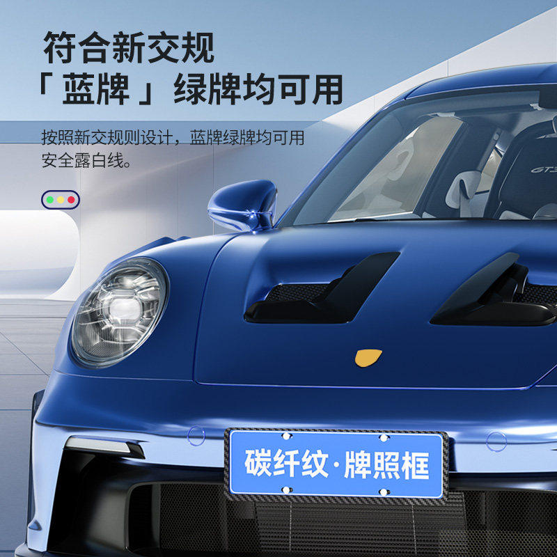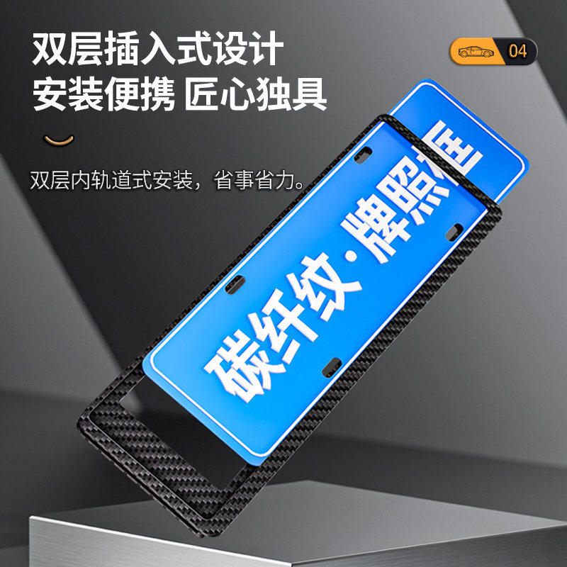 碳纤纹双层牌照框保护框插入式防折掰的车牌边框绿牌汽车号牌架