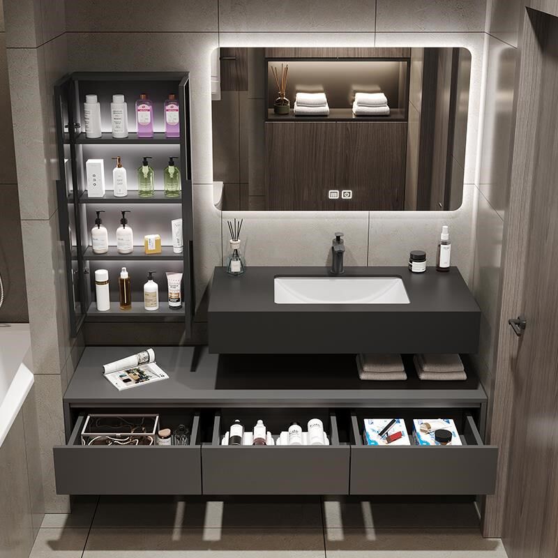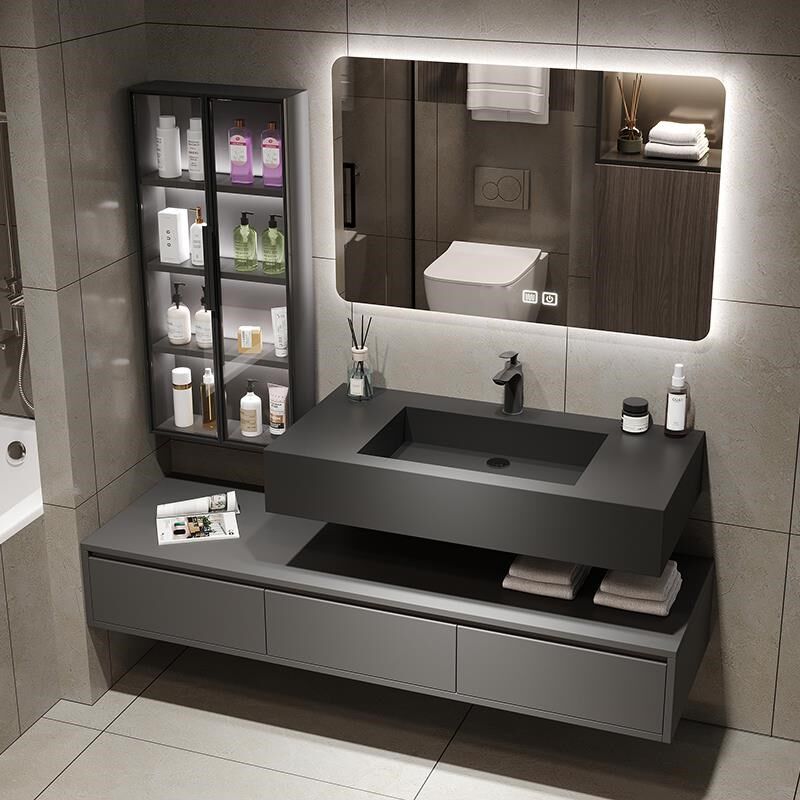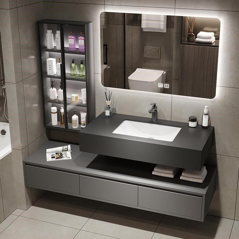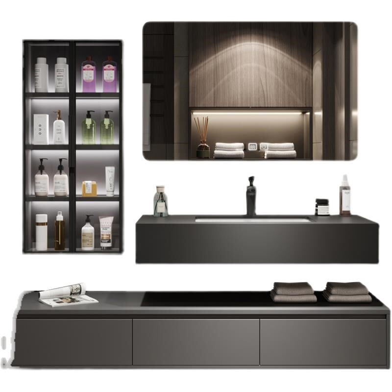 岩板浴室柜组合现代简约实木洗脸盆轻奢洗漱台智能镜双层挂墙吊柜
