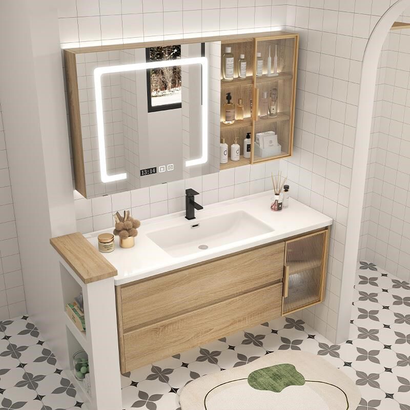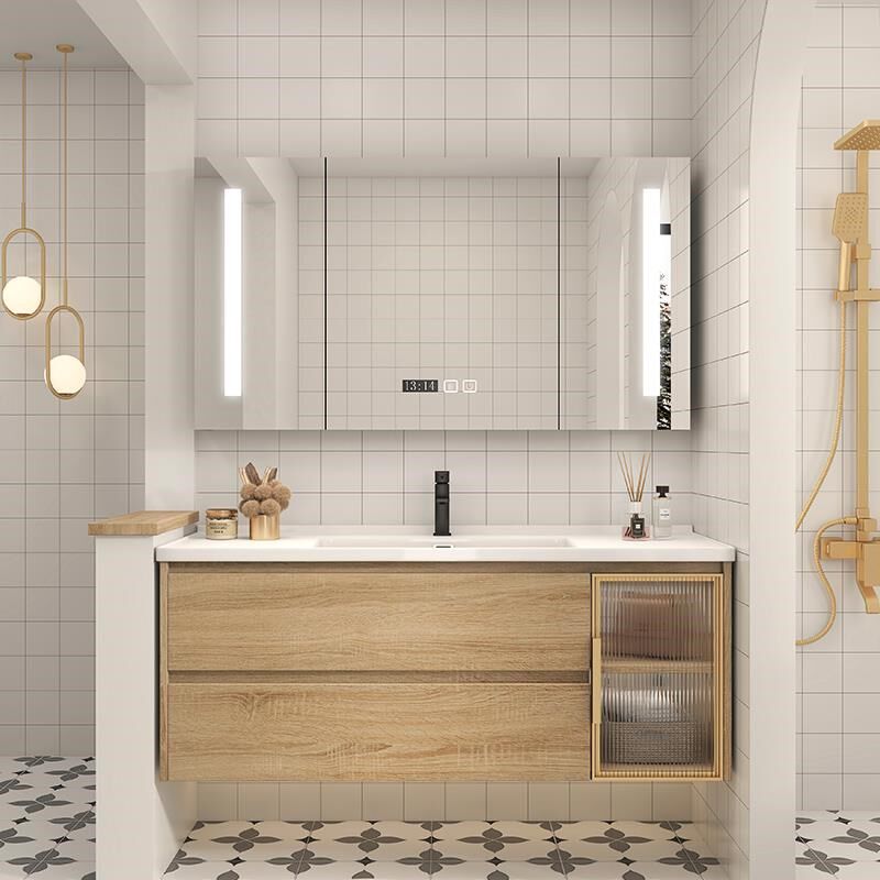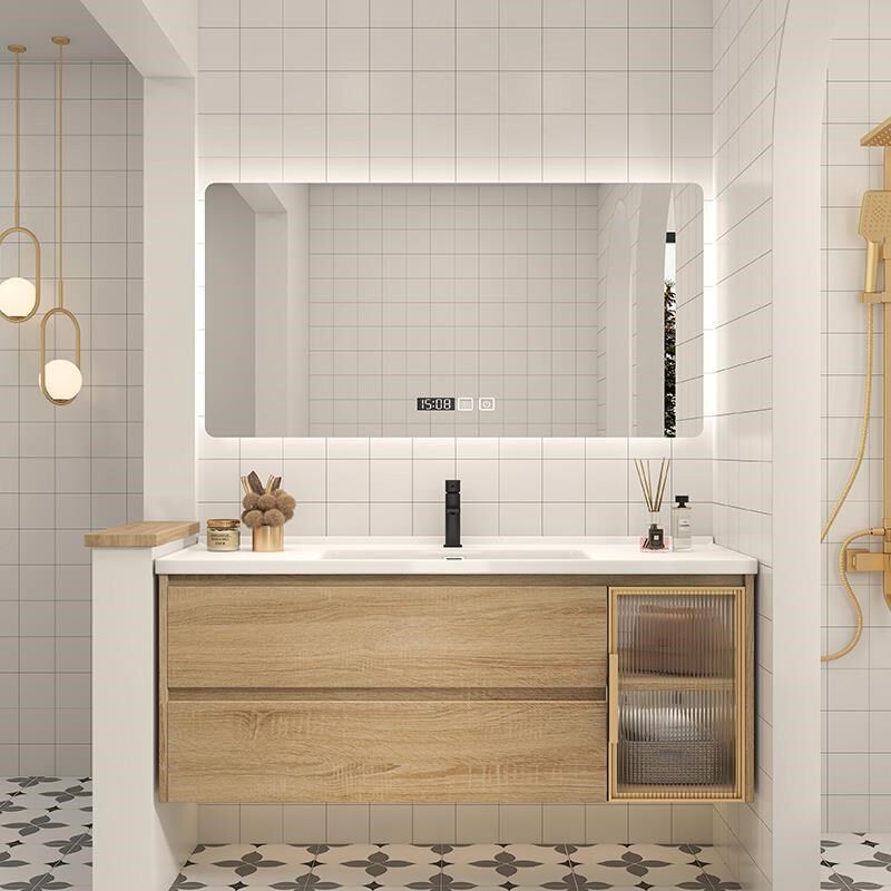 日式原木风浴室柜镜柜组合卫w生间洗脸盆柜洗漱台一体洗脸盆柜套