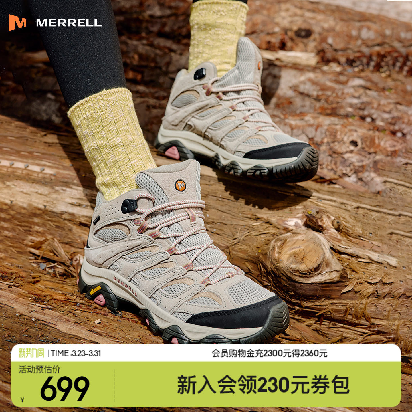 MERRELL迈乐MOAB3中高帮登山鞋男女防水防滑户外专业运动徒步鞋