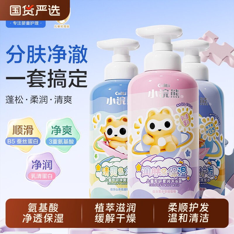 小浣熊洗发水儿童专用洗护套装男童女童宝宝沐浴乳宝宝沐浴乳