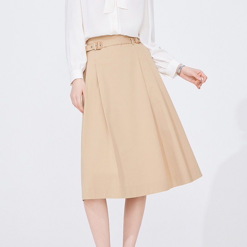 商场同款森马半身裙女磨毛纯棉长裙2025秋新款纯色伞裙百搭20002