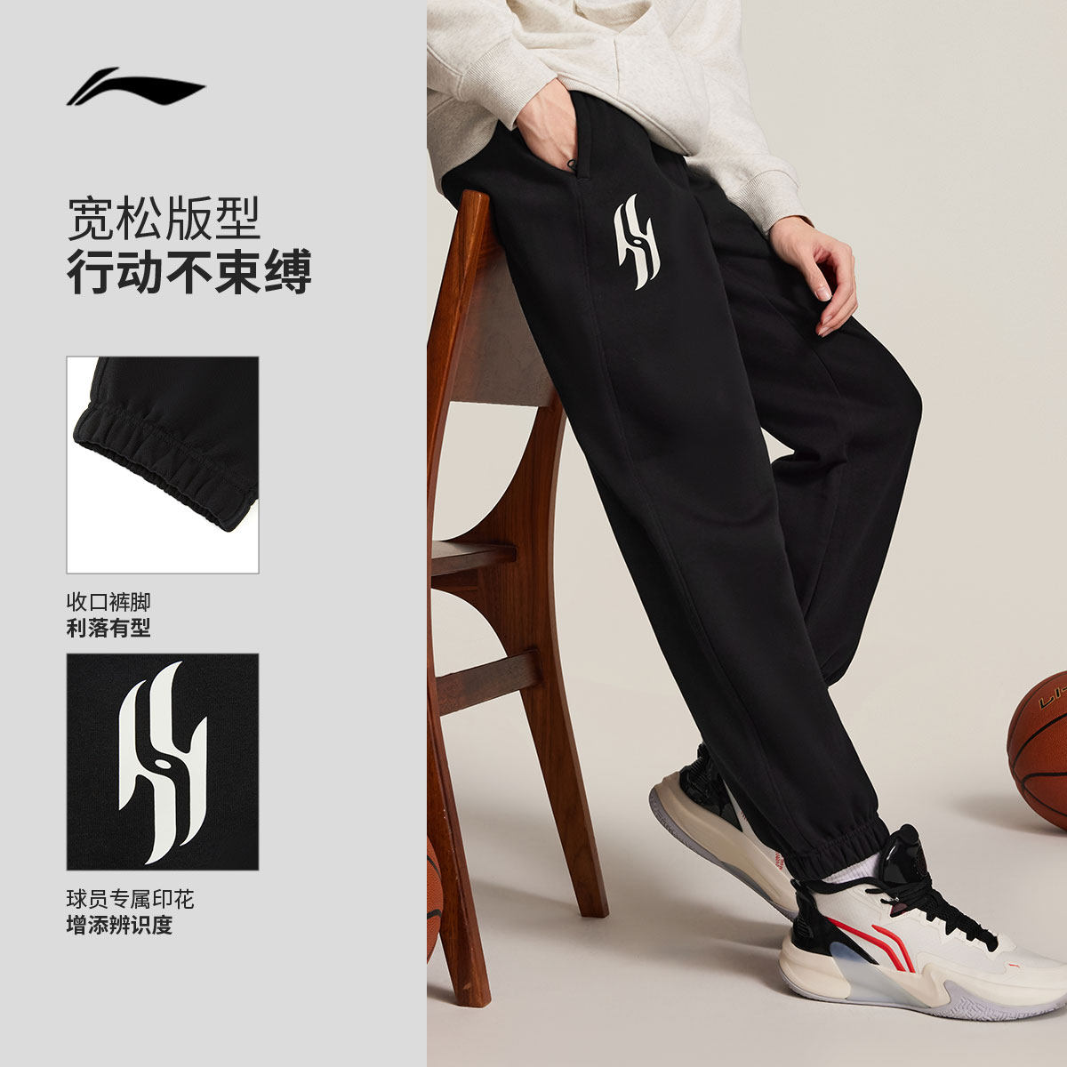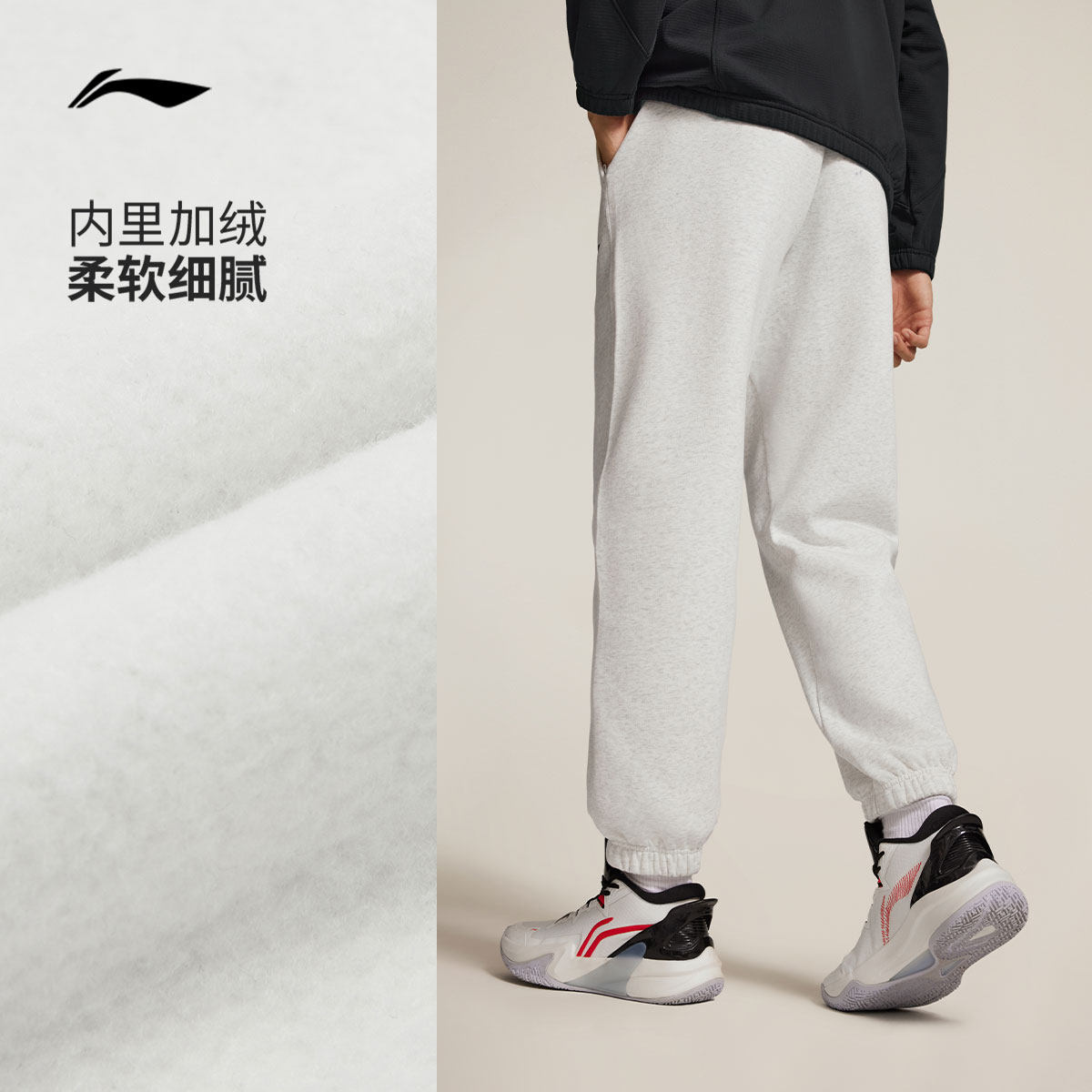 李宁杨瀚森篮球系列卫裤男士新款冬季加绒保暖束脚裤针织运动裤