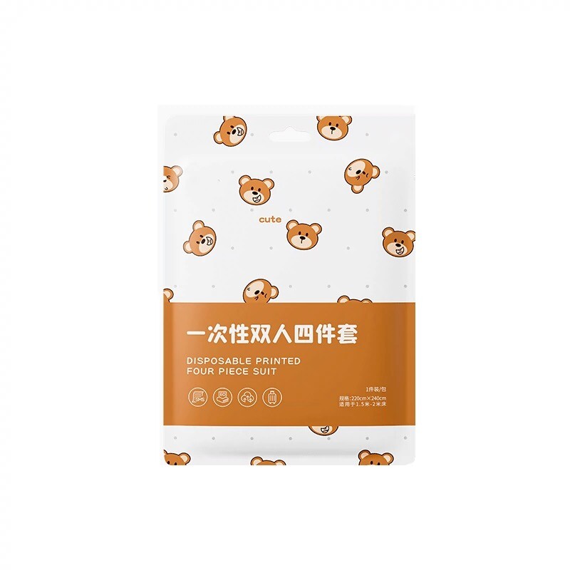 旅行一次性床单被罩枕套酒店出差双人床四件套装加厚隔脏印花睡袋