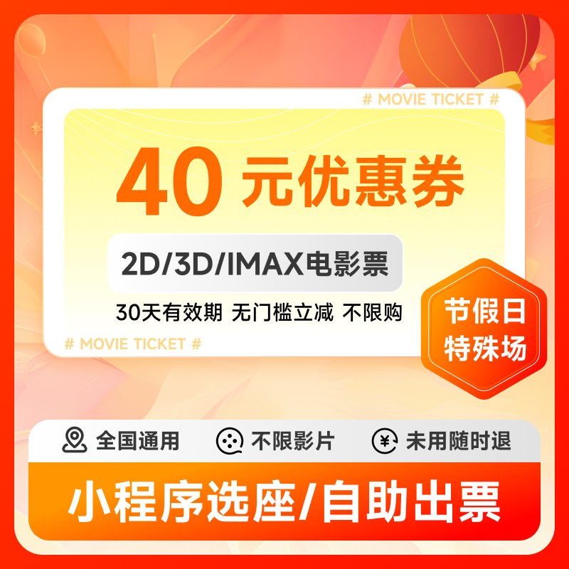 电影票40元优惠券万达金逸星轶全国通用节假日电影券全电影通用