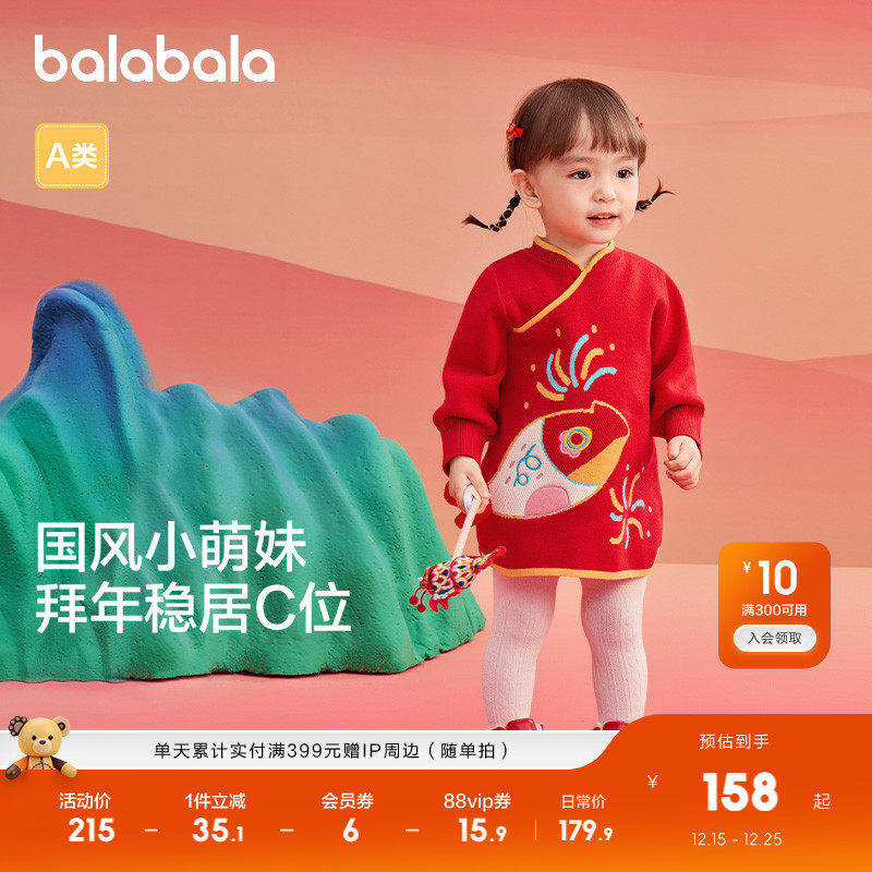 巴拉巴拉童装婴儿宝宝连衣裙儿童裙子2025春女童国风旗袍裙新中式
