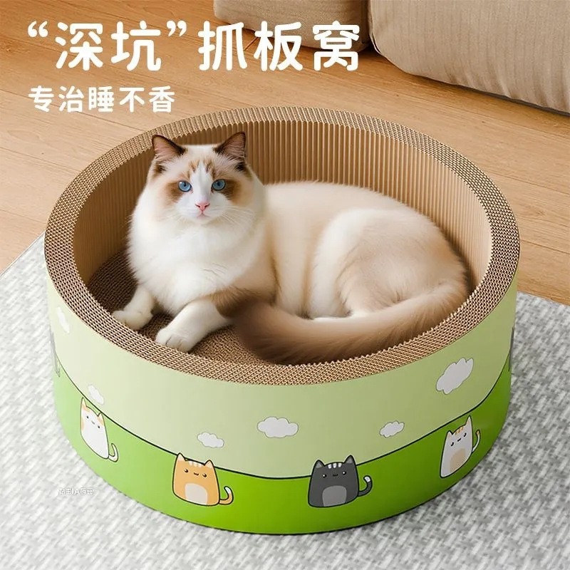 圆形猫抓板窝耐磨不掉屑猫窝一体猫咪抓盆特大号抓猫爪板耐抓幼猫