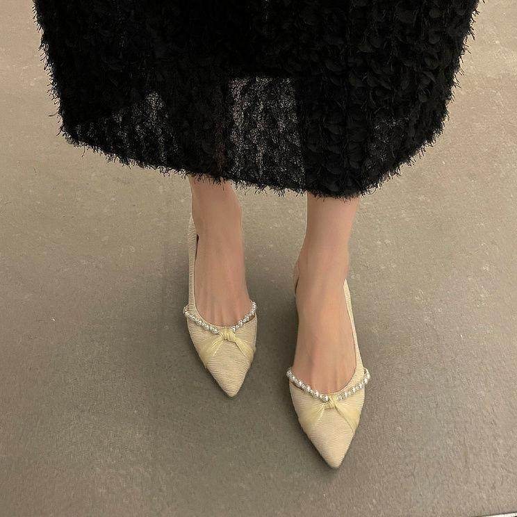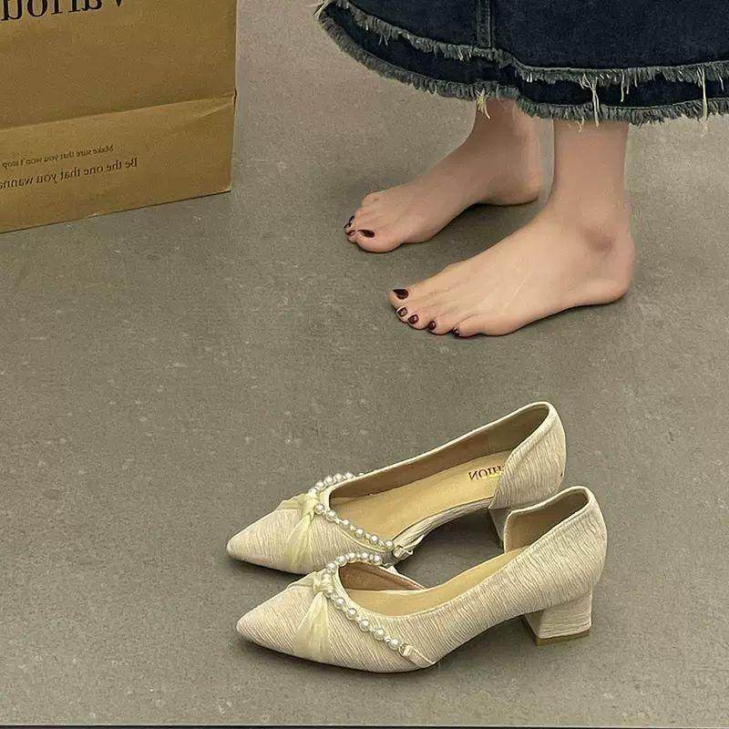 中粗跟小码女鞋小香风法式单鞋女2025春夏季温柔尖头小个子高跟鞋