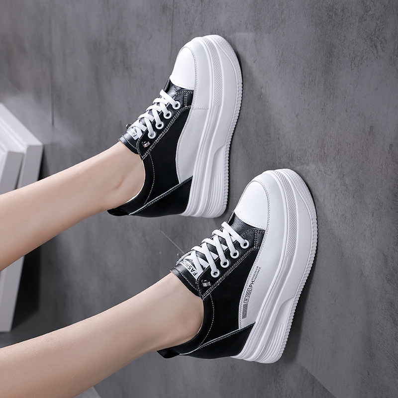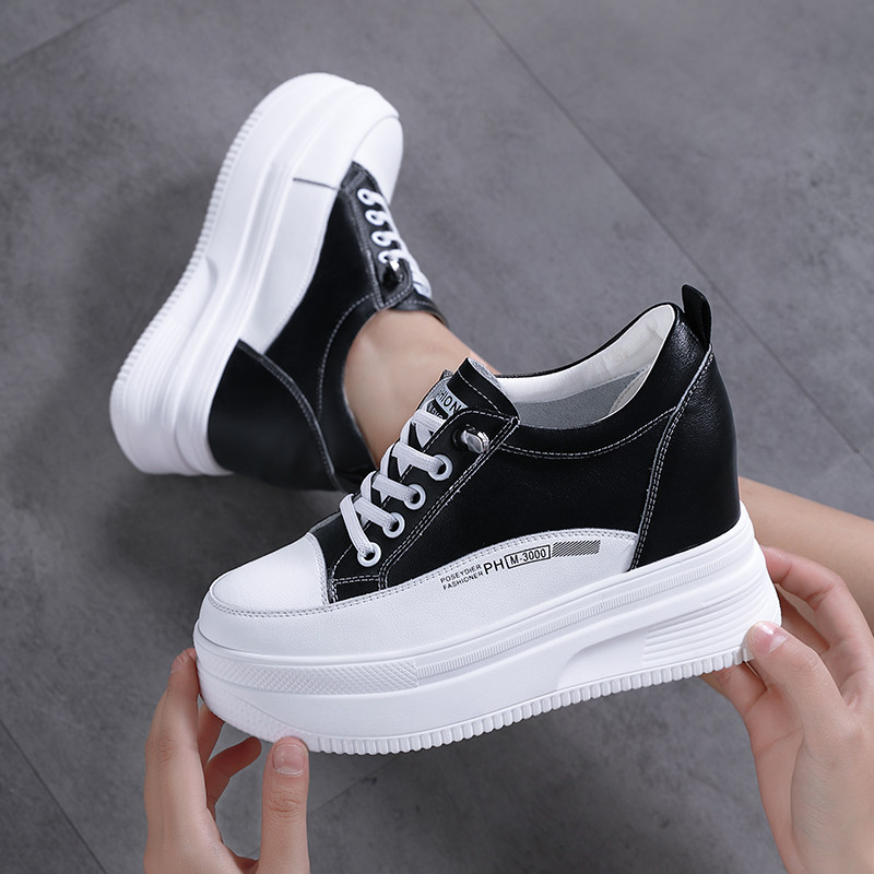 小码厚底女鞋2025新款秋冬季小个子增高10CM不累脚超火真皮小白鞋