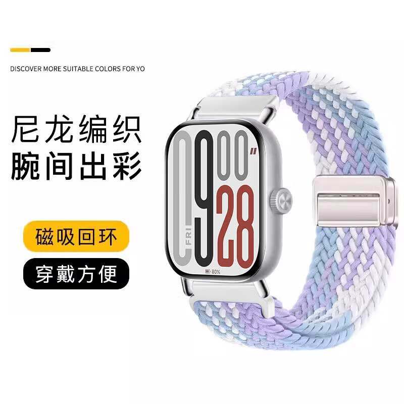 适用小米手环9pro表带8pro尼龙编织磁吸扣手表表带红米watch4智能运动透气腕带redmiwatch5个性ins高级感配件