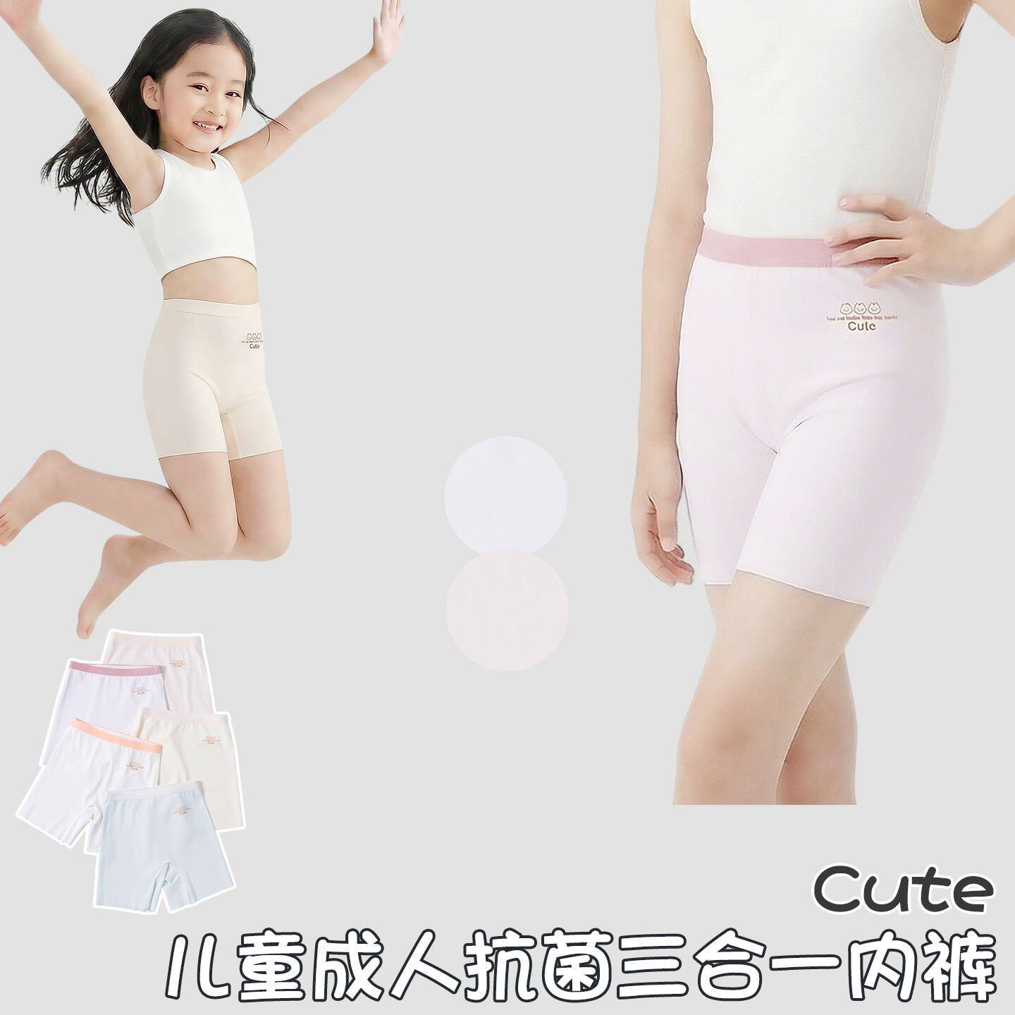 夏季薄款女童安全裤中大童三合一内裤桑蚕丝10A抗菌亲子卫生短裤
