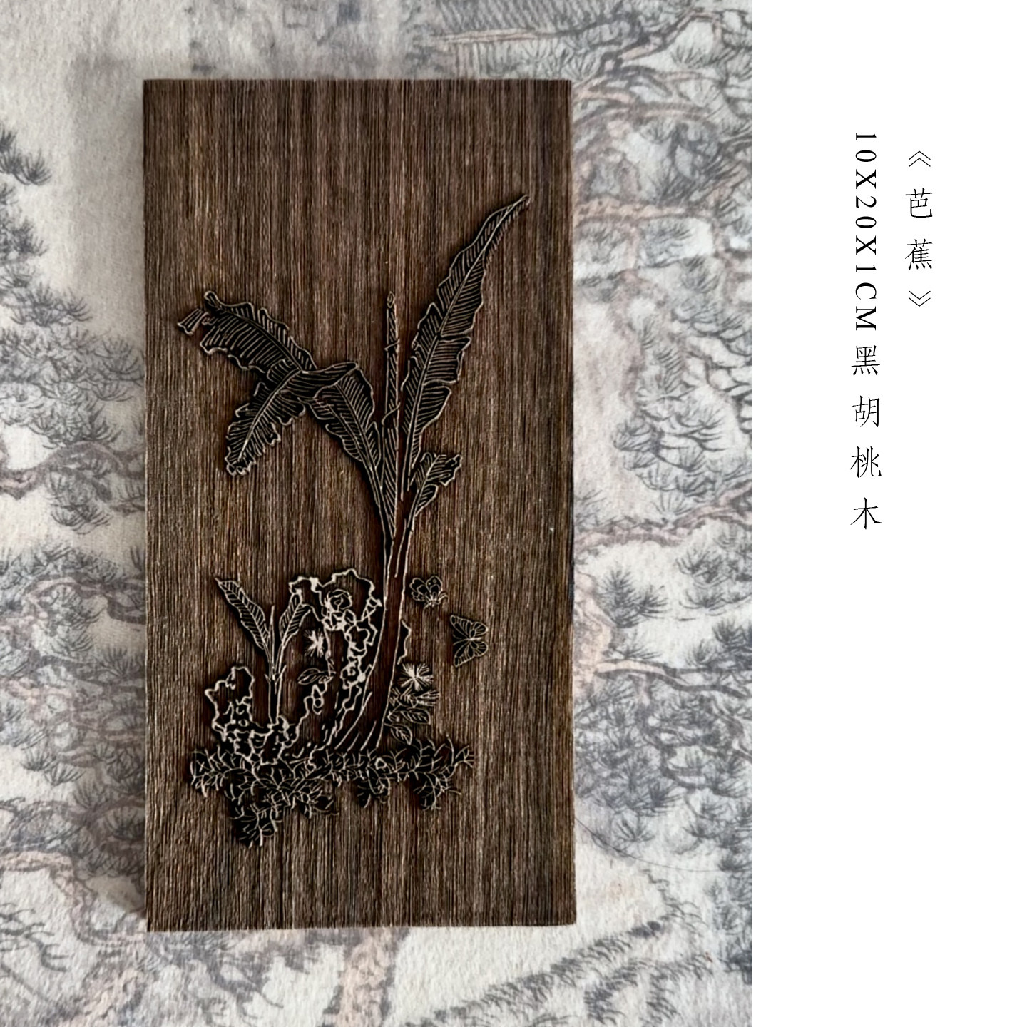 萝轩变古笺谱黑胡桃木雕版砑花笺纸雕版桌面屏风砑花笺底板两用