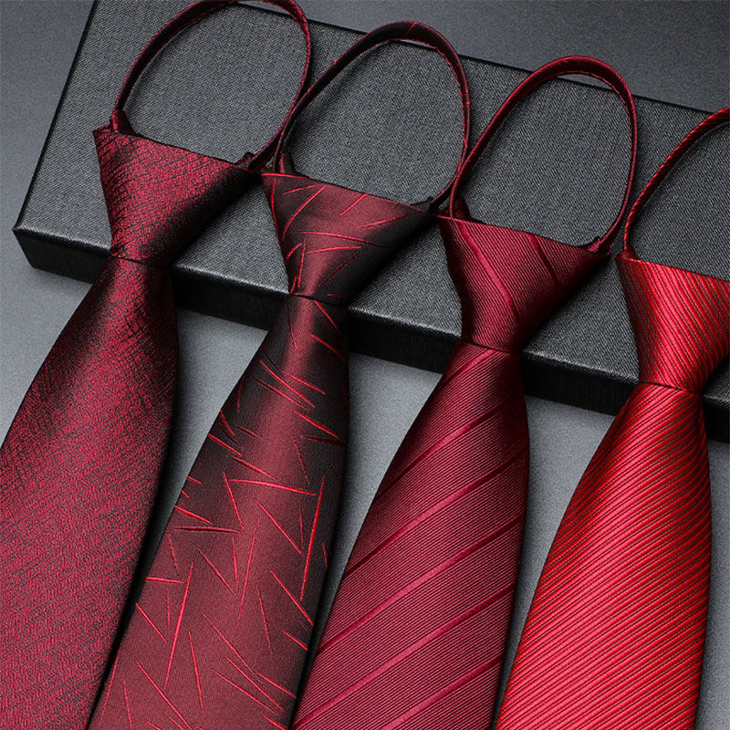 相思鱼红色结婚领带男士拉链式新郎高端西装商务免打8cm条纹手打
