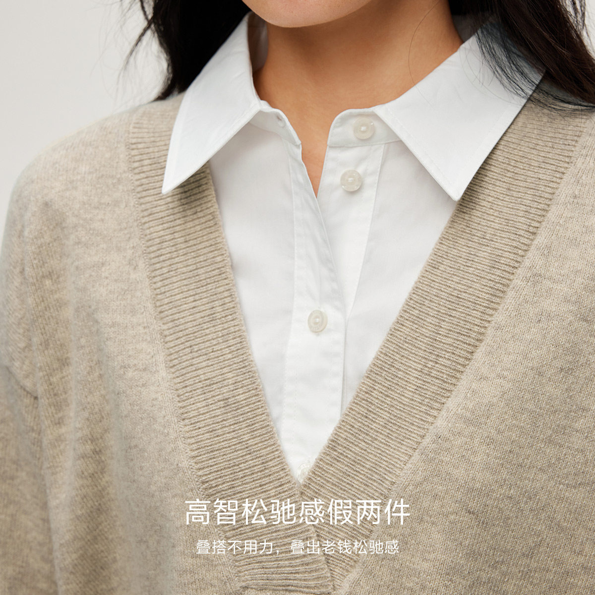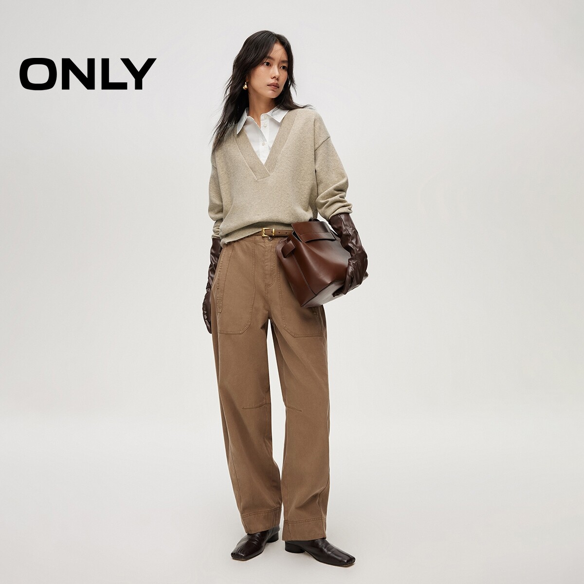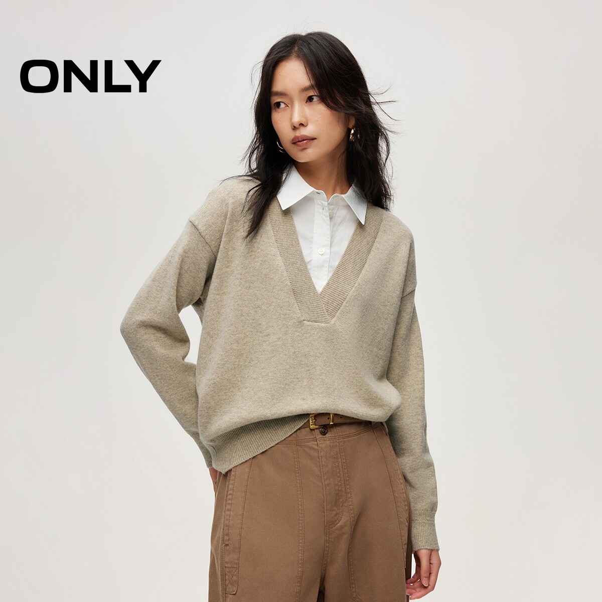 ONLY2026春季新款高智感学院风深V领含绵羊毛假两件毛衣针织衫女