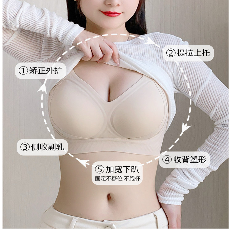 润微提拉内衣女大胸显小无痕提拉防下垂聚拢收副乳胸罩爆款文胸