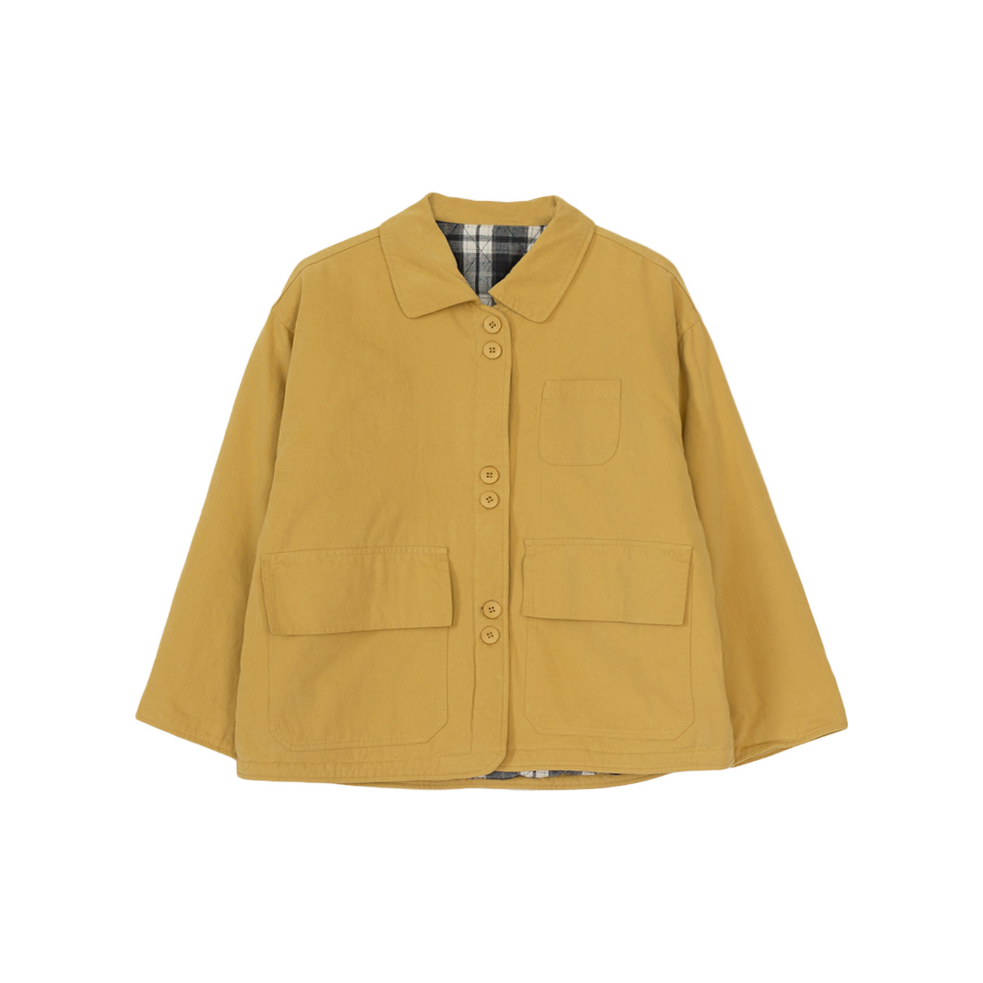 JIINOO美式复古格纹翻领拼接外套男秋季假两件情侣夹克上衣