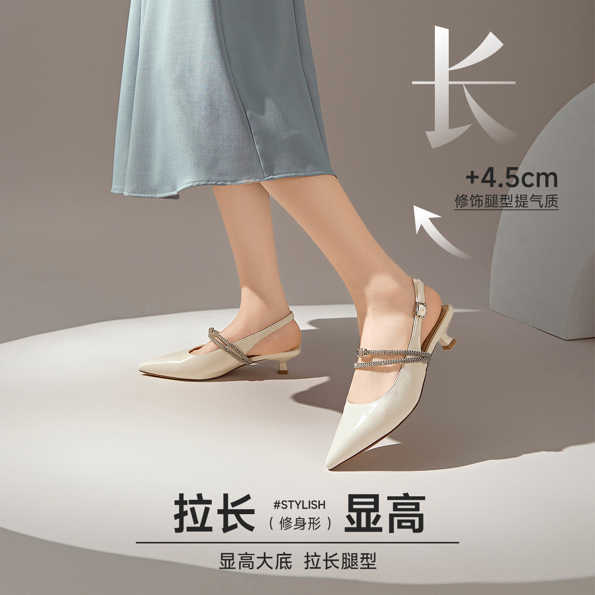 吴大叔2025秋冬时尚后空凉鞋尖头高跟鞋女气质高级不累脚漆皮女鞋