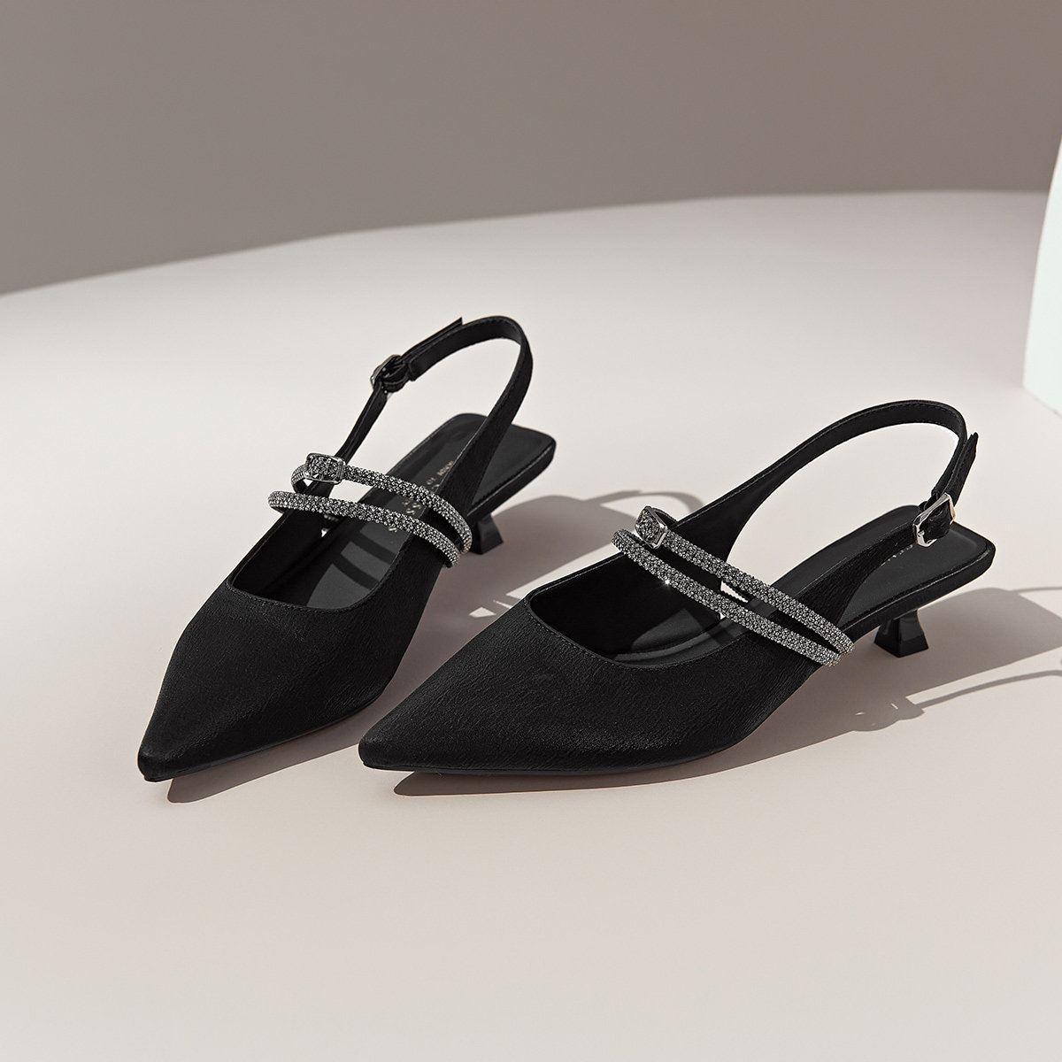 戈美其商场同款尖头细跟凉鞋女夏季配裙子2025新款水钻一字带空鞋