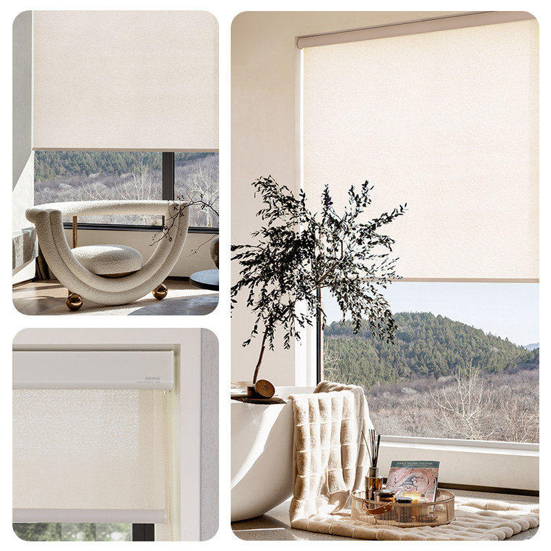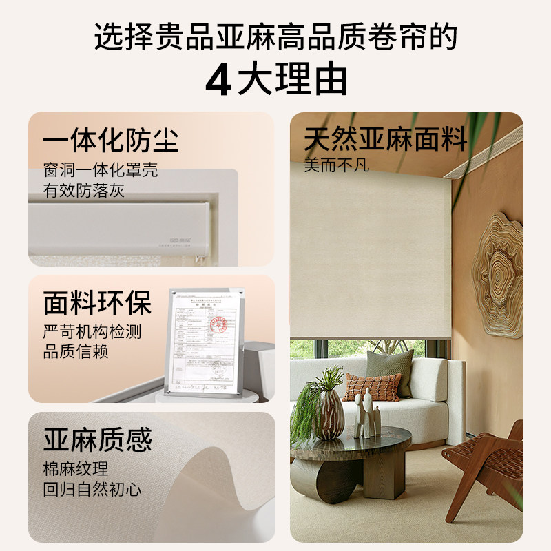 轻奢亚麻质感卷帘窗帘厂家定制可升级电动