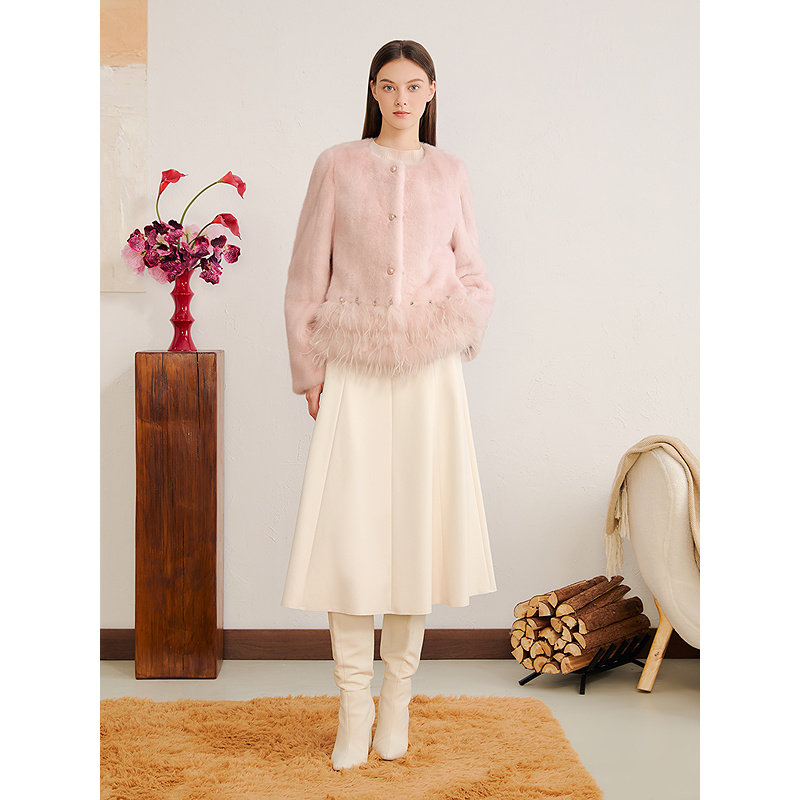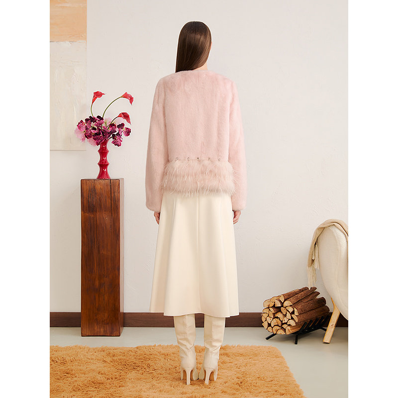 YINER音儿专选2025冬季新款钉珠羽毛装饰貉子毛拼接水貂毛皮草