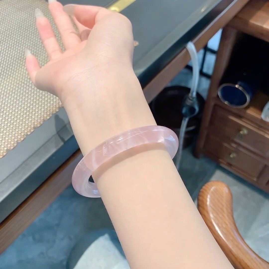 天然水晶莫粉手镯六芒星光透饰品女果冻芙蓉石莫桑比克粉晶首饰