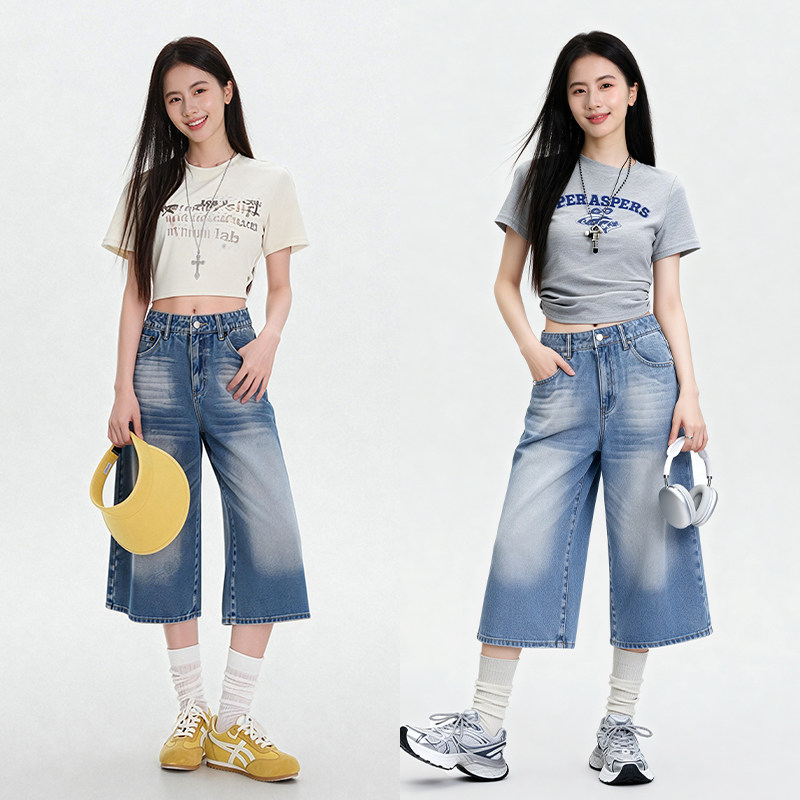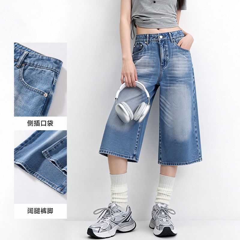 真维斯女七分阔腿牛仔裤2026新款