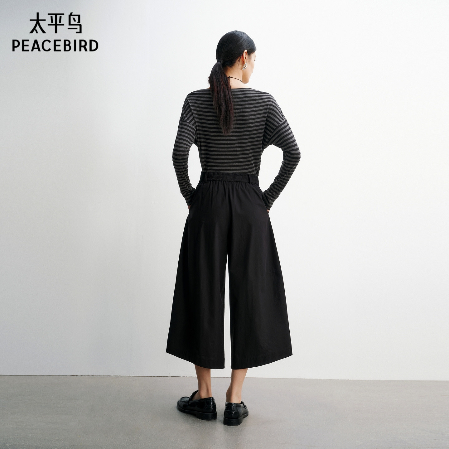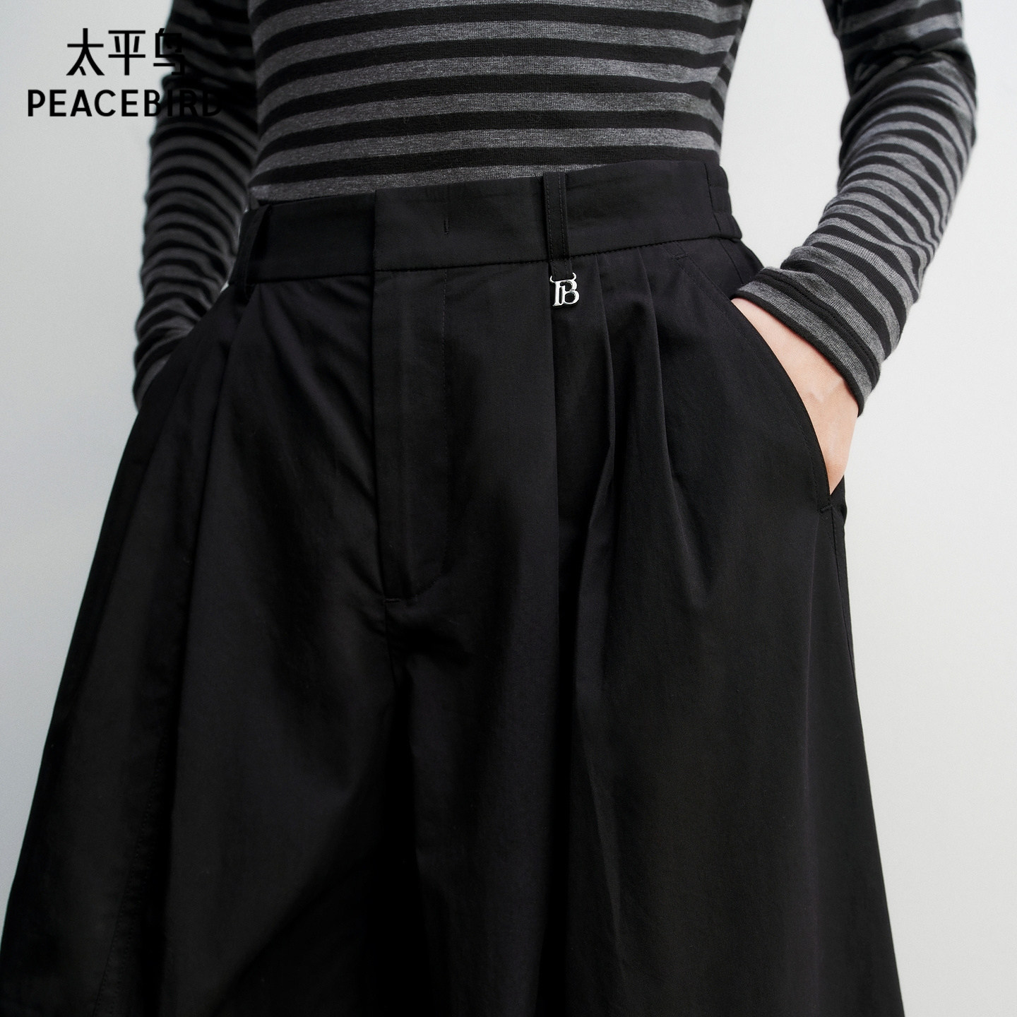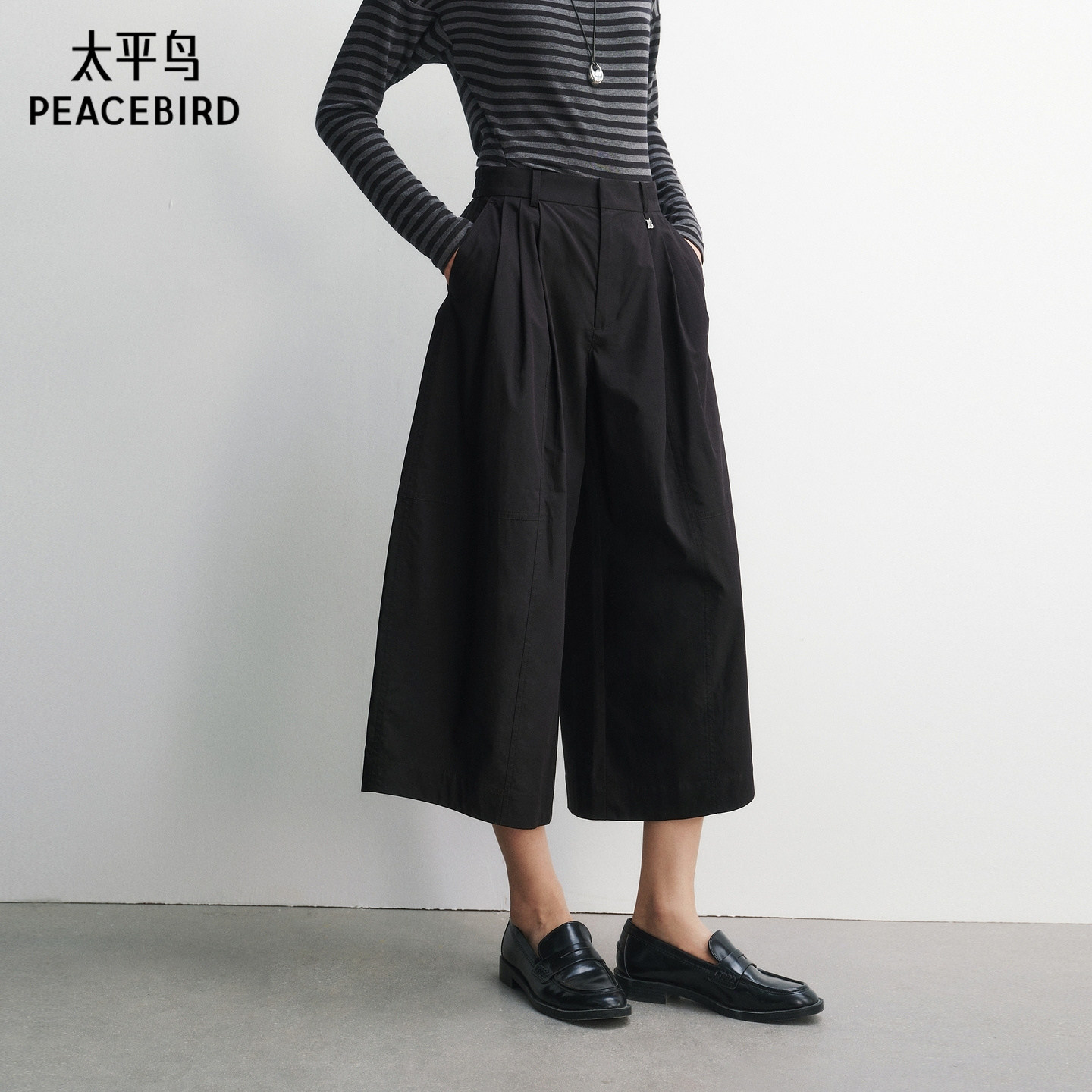 太平鸟高腰七分阔腿休闲裤2026年夏季新款宽松廓形通勤中裤直筒裤