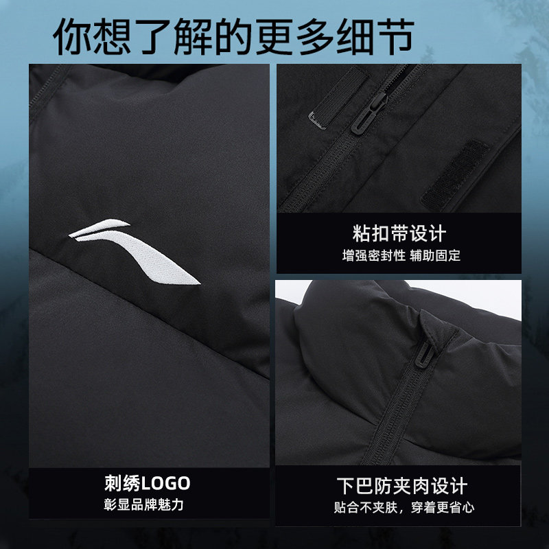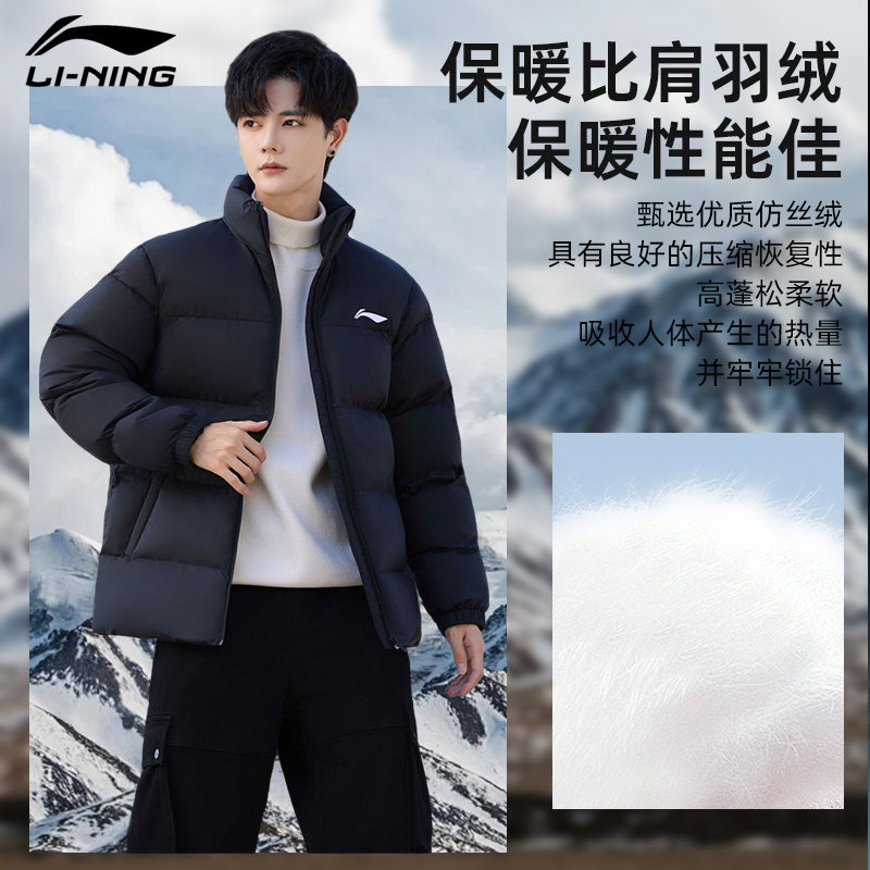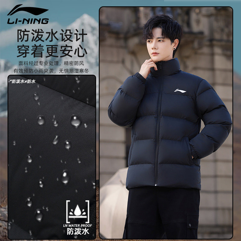 李宁棉服立领拼色短款男生2025年新款保暖加厚运动外套面包服正品