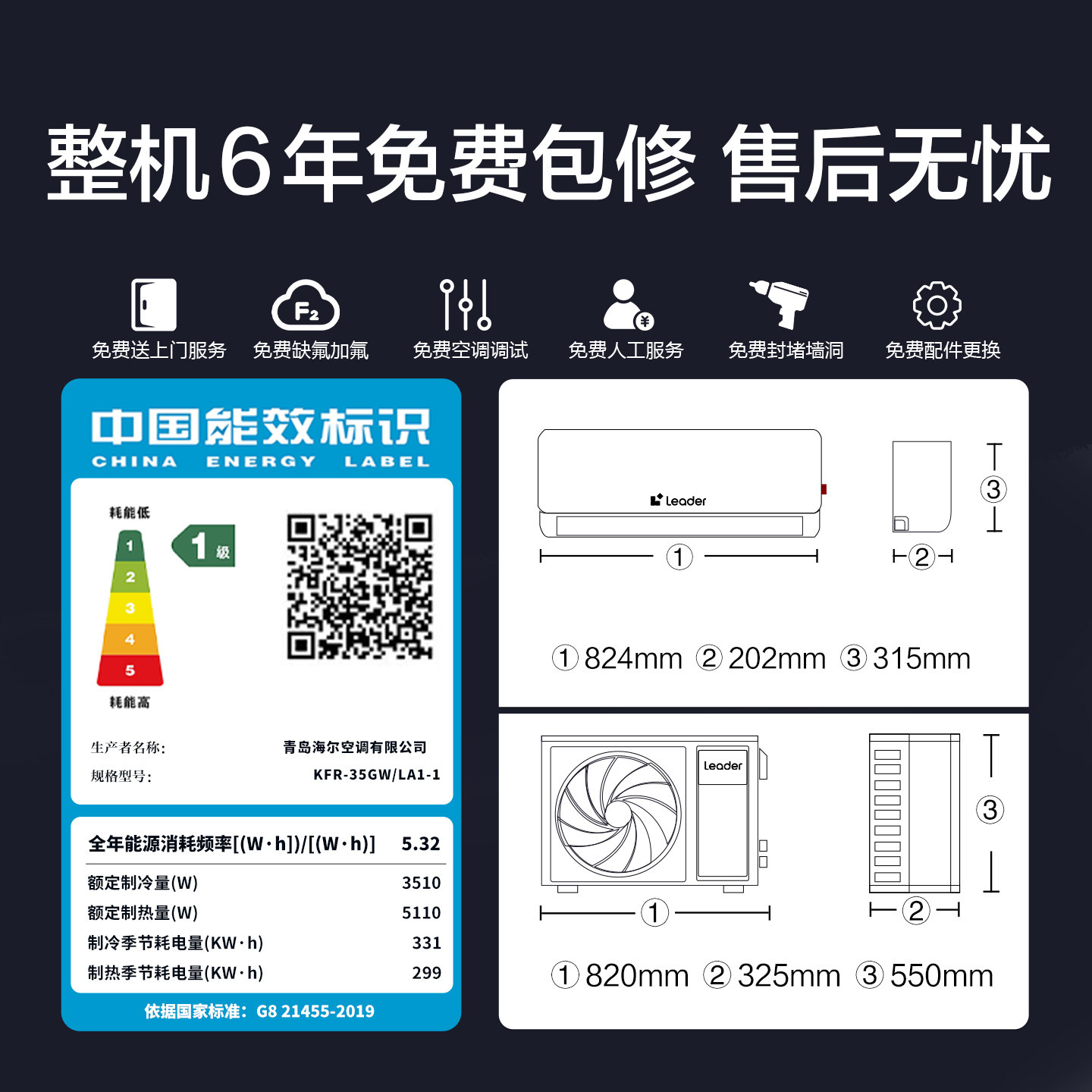 海尔出品统帅超省电空调1.5匹一级能效卧室节能变频挂机35La