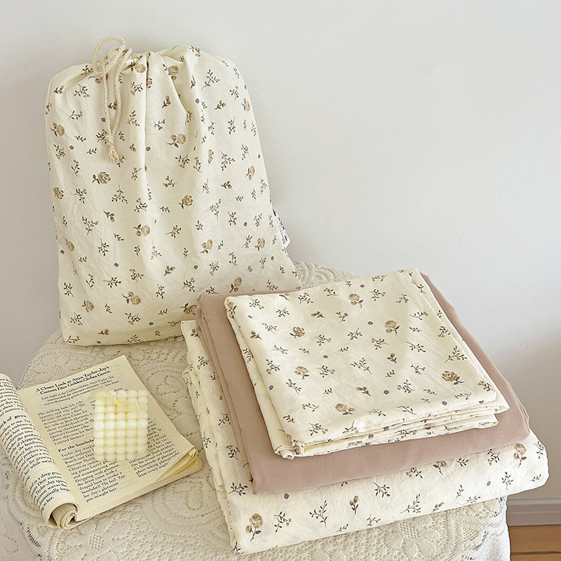 A类双层纱床上四件套纯棉全棉新款田园床单件被套被罩宿舍三件套4
