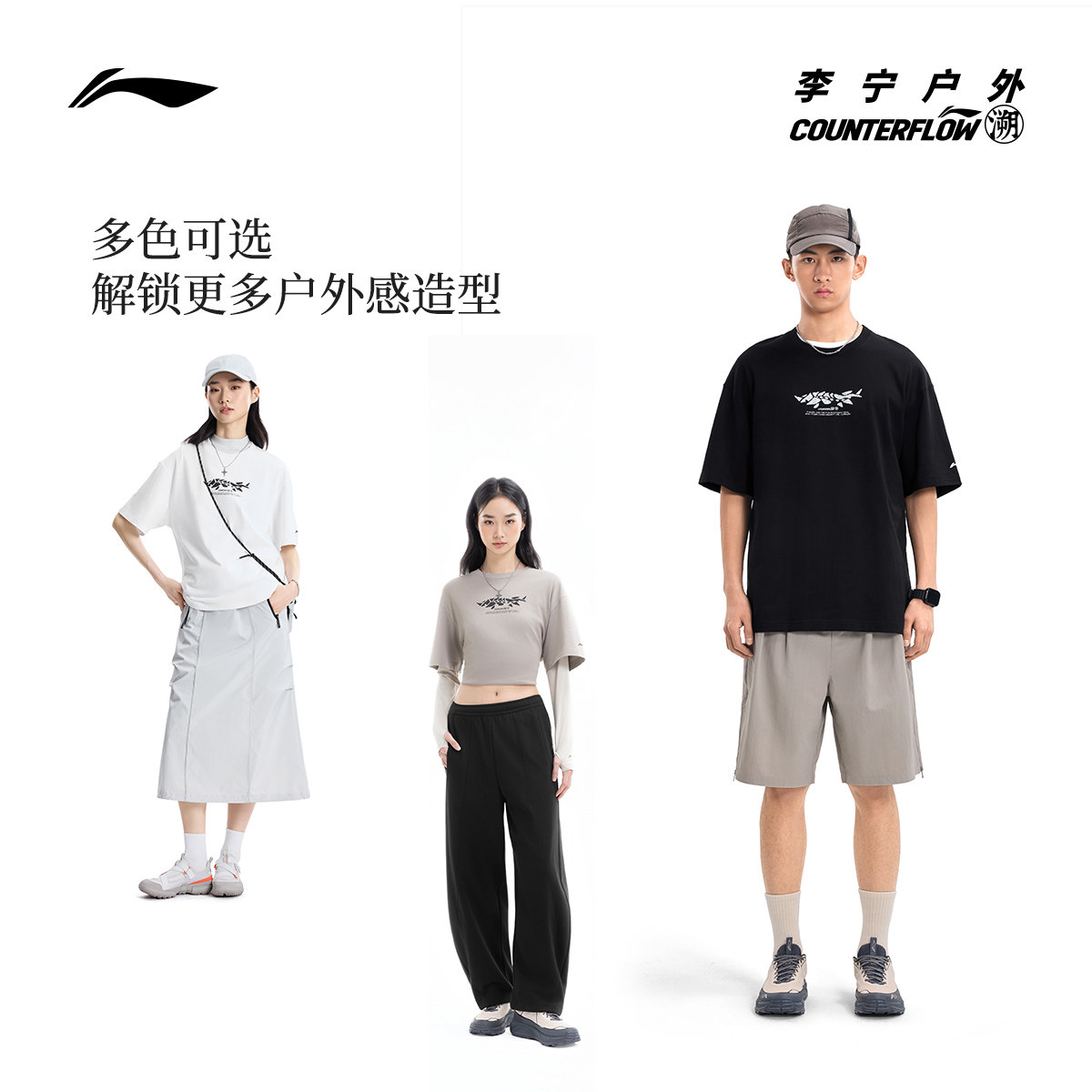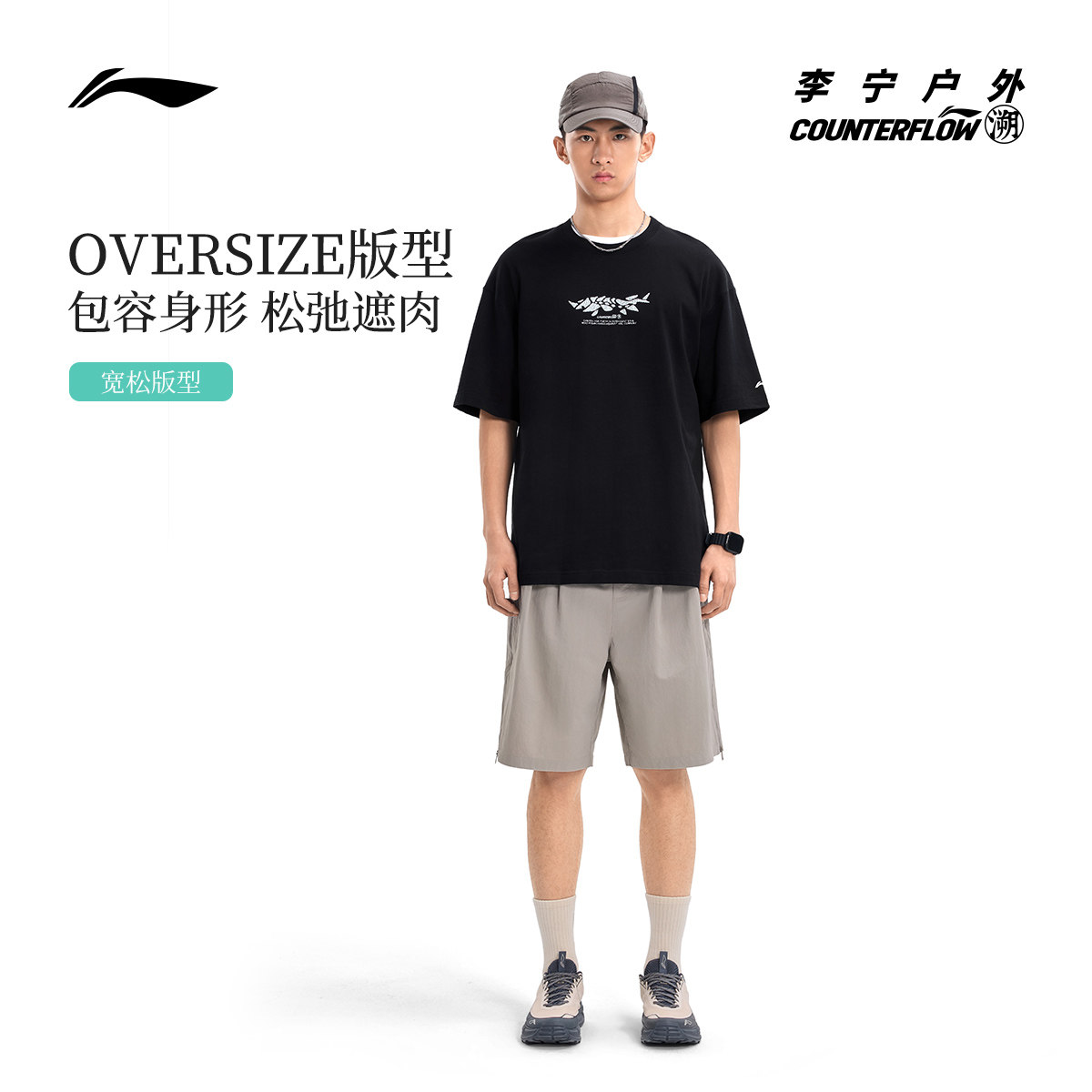 李宁户外CF溯|短袖T恤男女新款圆领半袖夏季体恤宽松针织运动服