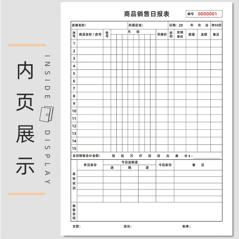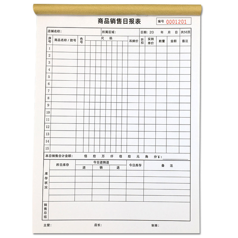 商品销售日报表服装店营业报表店铺零售库存盘点表销货统计表定做
