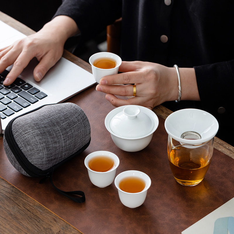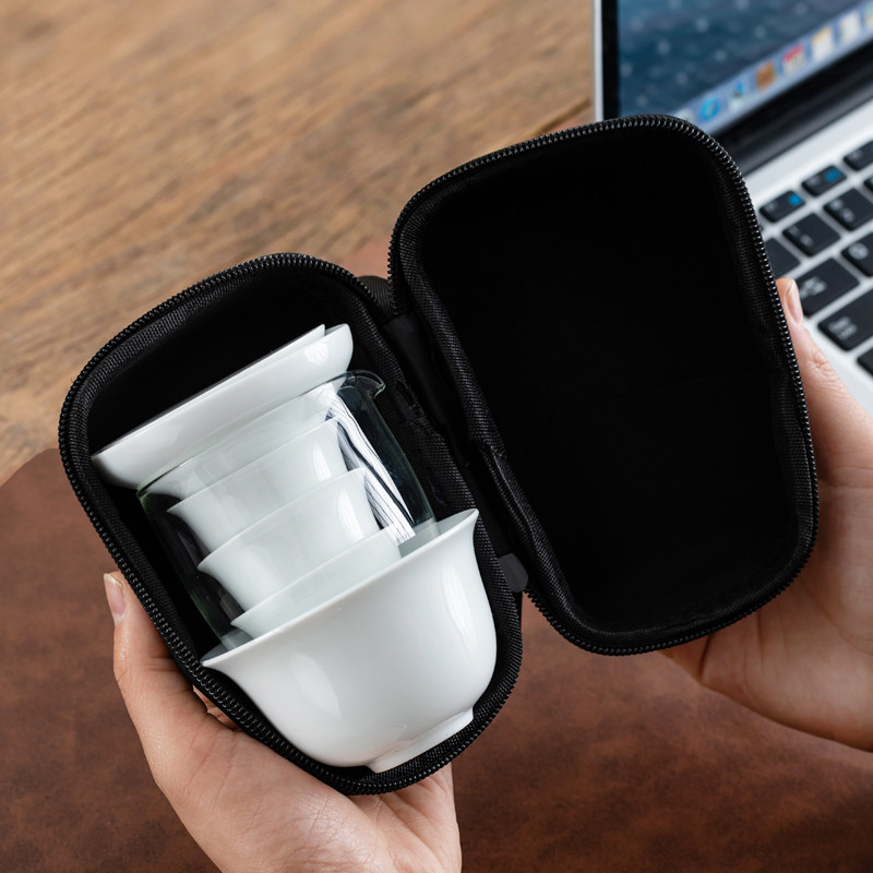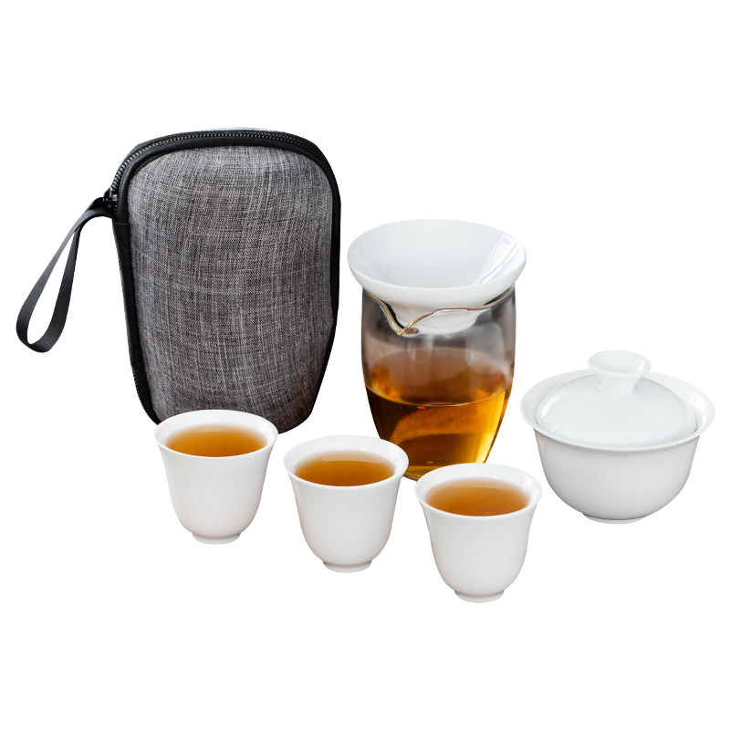 盖碗玻璃快客杯旅行茶具套装家用白瓷便携包户外露营礼品logo喝茶