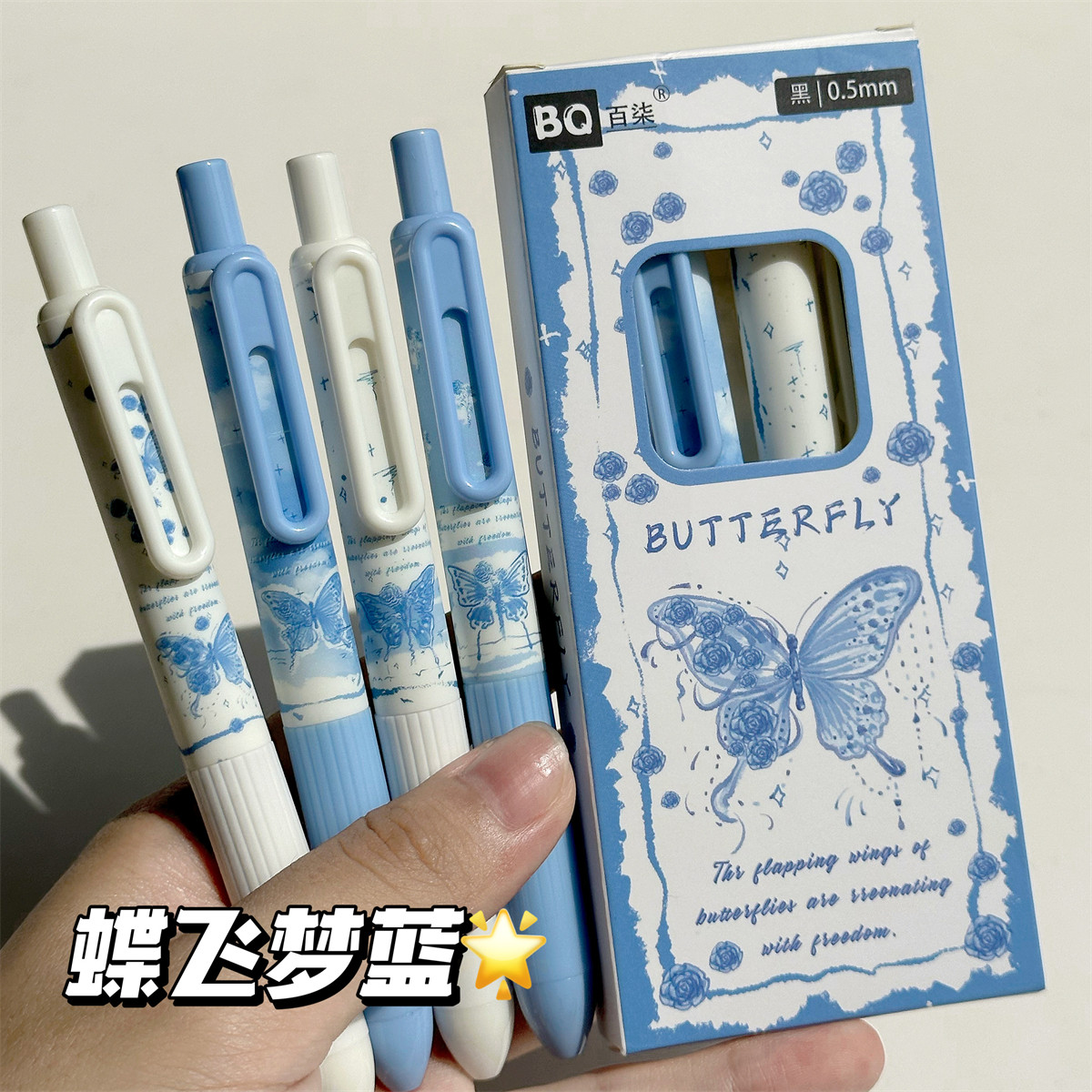 蓝色系蝴蝶结按动笔中性笔高颜值ins风少女心0.5mm速干黑色刷题笔